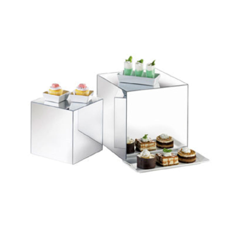 The Cal Mil MC700 Mirror Display Riser Cubes Set of 3 Nestable is a sophisticated solution for showcasing items in a variety of settings, including retail displays, catering events, and exhibitions. This set features three acrylic mirror cubes, each distinctly sized at 8 inches, 10 inches, and 12 inches, designed to nest seamlessly together for efficient storage when not in use. The versatile sizing allows for dynamic display arrangements, catering to diverse presentation requirements. The use of acrylic material ensures durability and a modern aesthetic, while the mirror finish enhances the visual appeal by reflecting surrounding light and colors, creating a captivating display environment. Ideal for highlighting premium products or creating tiered displays, these riser cubes provide both a functional and elegant solution for enhancing the visibility of displayed items. With their nestable feature, these cubes offer a practical space-saving advantage, making them a smart choice for businesses or individuals looking to maximize their display potential without occupying additional storage space. The Cal Mil MC700 Mirror Display Riser Cubes Set is an excellent addition to any professional setting that demands both practicality and style in product presentation.