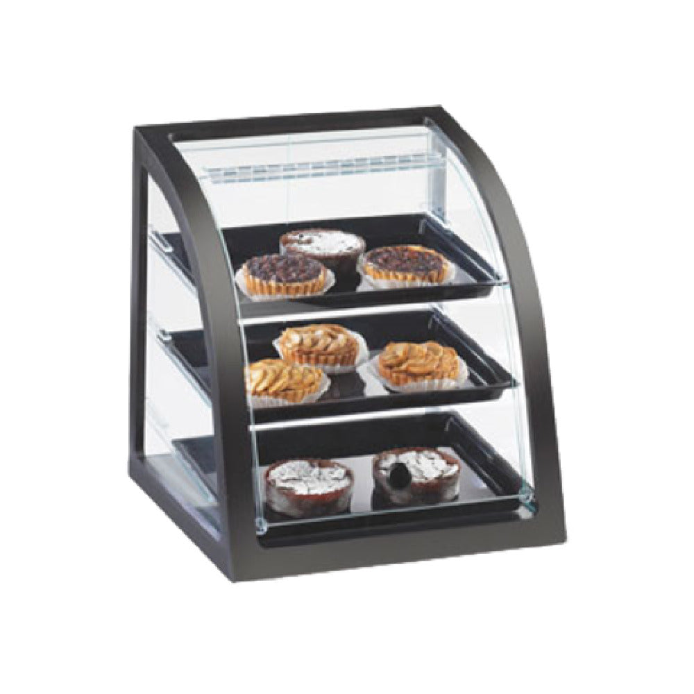 The Cal Mil P255-96S Midnight Bamboo Display Case is a meticulously designed product with dimensions of 17"W x 17"D x 18"H, providing a substantial three-tier display solution. This self-serve, non-refrigerated countertop unit is perfect for showcasing a variety of items in a visually appealing manner. Featuring a Euro sloped front, it enhances product visibility while maintaining accessibility. The single top hinged front door ensures ease of use in a busy environment. Inside, the case includes three 10" x 14" black trays, model 335-10-13, which are perfectly suited for organizing and displaying an array of goods. Constructed with an acrylic body frame, this display case is both durable and lightweight. Importantly, it is BPA-free, ensuring that the materials used are safe for food contact. This display case is ideally suited for different market segments within the hospitality industry, including cafes, bakeries, and buffet-style settings, where efficient product presentation is key. Its unique midnight bamboo design adds an element of sophistication and modernity to any setting, making it a versatile choice for businesses looking to enhance their countertop displays with a touch of elegance and practical design.