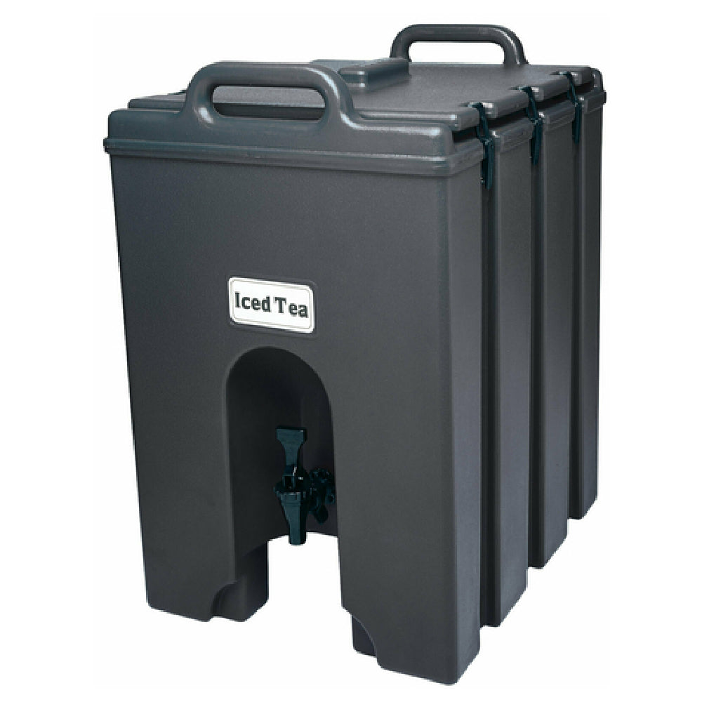 The Cambro 1000LCD110 Camtainer® Beverage Carrier - 11-3/4 Gallon 16-1/4"W x 20-3/4"D x 24-3/4"H - is a versatile solution for transporting and serving beverages in various settings. Crafted from insulated plastic, this durable black carrier is designed to maintain optimal temperatures for hot or cold drinks, making it ideal for catering services, event planning, and institutional food service. With an impressive capacity of 11-3/4 gallons, the Camtainer® ensures that a high volume of beverages can be served efficiently, reducing the need for frequent refills. Its compact dimensions of 16-1/4 inches in width, 20-3/4 inches in depth, and 24-3/4 inches in height allow for easy storage and transportation, fitting seamlessly into different operational environments. The 1000LCD110 is an NSF-certified product, assuring compliance with rigorous public health and safety standards, which is crucial for maintaining hygiene in food service operations. This beverage carrier provides a practical and reliable choice for professionals seeking an effective solution to beverage management, combining functional design with robust construction to meet the needs of varying market segments within the industry. Its unique attributes make it a valuable asset for those in the hospitality and catering sectors.