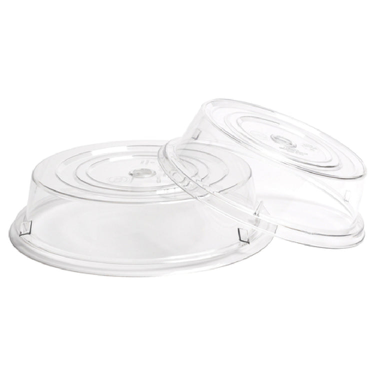 The Cambro 1101CWNH152 Camwear® Camcover® is expertly designed to cater to various segments within the food service industry, ensuring maximum functionality and durability. With an 11-inch diameter inside and a height of 2-11/16 inches outside, this round Camcover® is an optimal solution for maintaining food warmth on heated carts up to 210°F. Notably, it is crafted from lightweight polycarbonate, contributing to ease of handling and resilience. A key feature is its stackable design, which facilitates efficient storage and organization in bustling kitchen environments. The Camwear® Camcover® is devoid of any ventilation holes, effectively containing heat and preserving food quality. Its clear construction allows for easy visibility, ensuring that the contents are readily identifiable without lifting the cover, enhancing service efficiency. Additionally, this product is dishwasher safe, simplifying the cleaning process and maintaining high hygiene standards. Certified by NSF, the Cambro Camcover® assures compliance with health and safety regulations, making it a reliable choice for professional kitchens. Its robust design and practical features make it an indispensable tool for catering, banquets, and institutional dining settings, where maintaining optimal food conditions is paramount.
