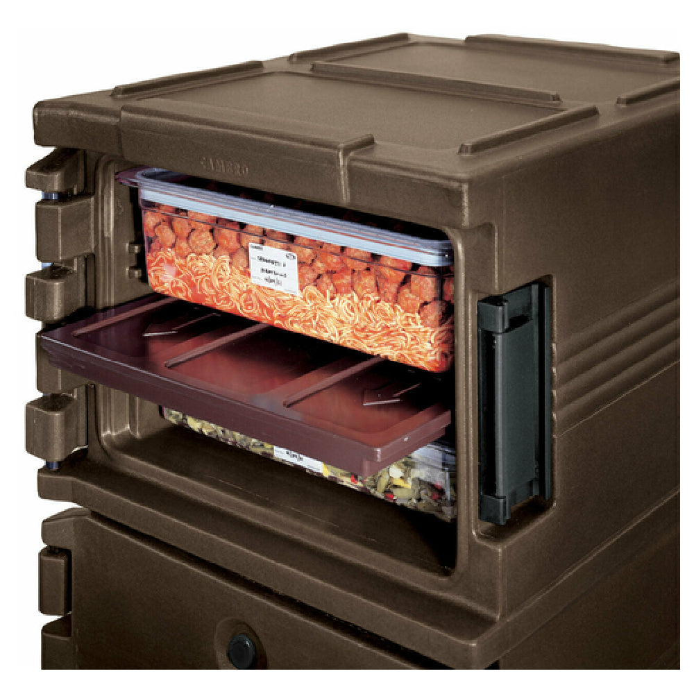 The Cambro 1200DIV131 ThermoBarrier® is a specialized removable insulated shelf measuring 20-7/8 inches in length, 12-7/8 inches in width, and 1-3/8 inches in height. This innovative shelf is designed to divide the interior of compatible units, such as the UPC1200, CVC72, and CVC724, into distinct hot and cold areas, enhancing the versatility and functionality of these food service solutions. Constructed from durable materials, the Cambro ThermoBarrier® is notable for its dishwasher-safe properties, allowing for straightforward cleaning and maintenance. The dark brown color of the shelf adds a professional touch to any kitchen environment. Certified by NSF, this product meets stringent standards for public health protection, making it a reliable choice for food service professionals seeking to optimize temperature control in their operations. The Cambro 1200DIV131 ThermoBarrier® is a valuable accessory for businesses looking to maintain precise temperature zones within their storage or service setups, accommodating the diverse needs of the restaurant, catering, and food delivery industries. Its removable design ensures flexible use and easy integration into existing systems, providing an adaptable solution for maintaining food quality and safety across various culinary applications.