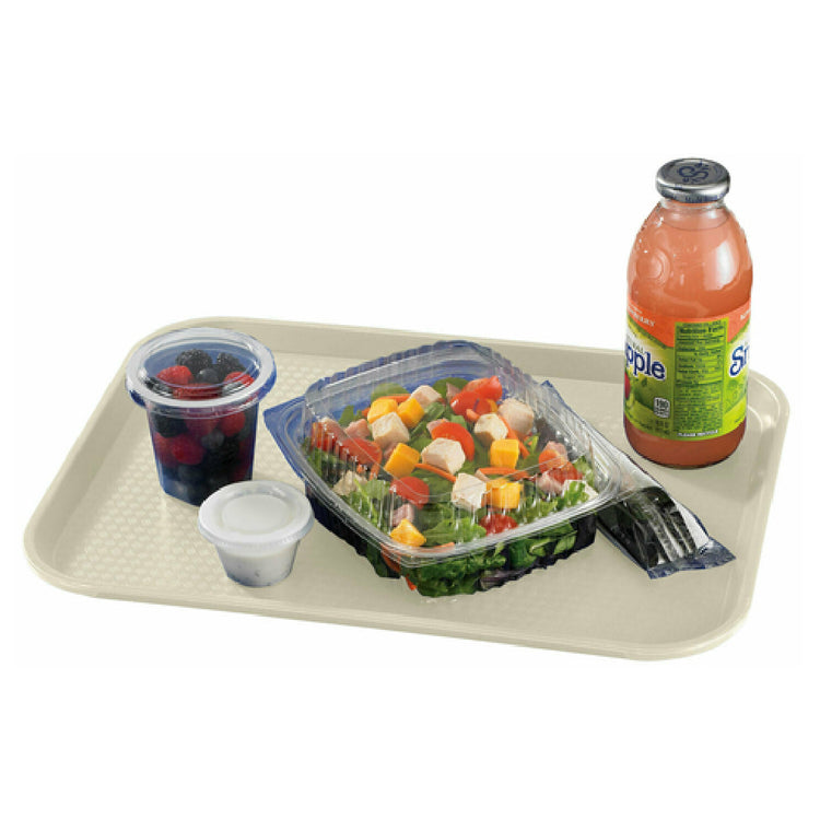 The Cambro 1216FF106 Fast Food Tray is a practical and durable solution for food service establishments, distinguished by its robust construction and functional design. With dimensions of 11-7/8" x 16-1/8", this rectangular tray is perfectly sized for efficiently serving meals. Made of polypropylene, it ensures both strength and longevity, while its light peach color adds a subtle aesthetic appeal to dining areas. The rigid bottom and textured surface of the tray enhance stability and prevent slipping, making it ideal for busy fast food environments. This tray is designed to withstand the demands of frequent use, being dishwasher safe for easy cleaning and maintenance. Cambro's Fast Food Tray is NSF certified, attesting to its adherence to strict public health standards. Its features cater to a variety of market segments, from fast food chains to cafeterias, providing a practical and reliable serving option that supports operational efficiency through its thoughtful design and durable materials. Whether for high-volume dining settings or casual eateries, the Cambro 1216FF106 tray meets the essential needs of food service professionals with quality and functionality.