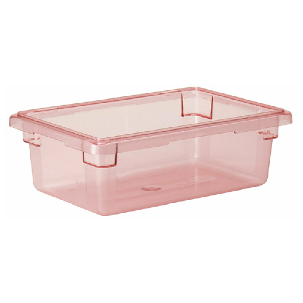 The Cambro 12186CW467 Camwear® Food Storage Container is a versatile and durable solution for various food storage needs, measuring 12 inches by 18 inches by 6 inches and offering a generous 3-gallon capacity. Constructed from robust polycarbonate material, this container is designed to withstand the rigors of a busy kitchen environment while maintaining a smooth surface for easy cleaning and handling. Its safety red color enhances visibility, making it suitable for quick identification in storage areas. This container is not only dishwasher safe, facilitating effortless maintenance, but it also meets the NSF certification standards, ensuring compliance with public health and safety guidelines. The Cambro 12186CW467 is ideal for use in restaurants, catering businesses, and institutional kitchens, where organization and hygiene are paramount. Its sizeable capacity makes it perfect for storing bulk ingredients or prepared foods, streamlining kitchen operations and ensuring efficiency. This food storage container exemplifies Cambro's commitment to quality and practicality, offering an essential storage solution for professionals seeking reliability and durability in their food storage equipment.