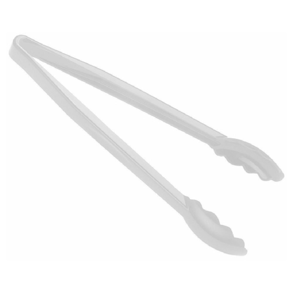 The Cambro 12TGS148 Lugano® Tongs 12" Scallop Grip are meticulously crafted for both durability and functionality, catering to the diverse needs of food service professionals. These tongs measure 12 inches in length, providing ample reach and control for various serving tasks. Designed with a scallop grip, they ensure a secure hold on food items, enhancing precision and reducing the risk of spills. The tongs are constructed from a durable heat-resistant material that withstands temperatures ranging from -40°F to 212°F (-40°C to 100°C), making them suitable for a wide array of culinary applications, from cold salads to hot entrees. Their solid white color adds a professional aesthetic, suitable for presentation in both casual and formal dining settings. Furthermore, these tongs are dishwasher safe, ensuring easy cleaning and maintenance, thus supporting operational efficiency in fast-paced environments. The NSF certification signifies that these tongs meet stringent public health and safety standards, making them a reliable choice for restaurants, catering services, and other food service establishments. The Cambro 12TGS148 Lugano® Tongs provide a versatile and dependable tool for chefs and servers, combining technical excellence with practical design.
