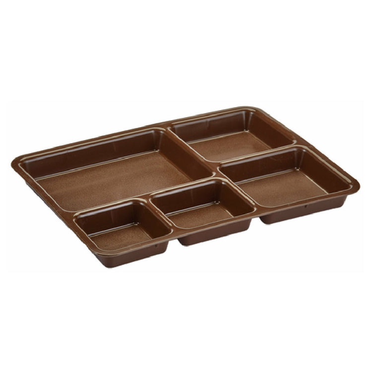The Cambro 1411CP167 Tray-on-Tray Meal Delivery Tray is designed with precision and practicality for the food service industry. This rectangular tray measures 14-3/8 inches in length, 10-9/16 inches in width, and 1-1/4 inches in depth, perfectly sized to accommodate various meal components while facilitating ease of service. With its 5-compartment layout, this tray enhances meal organization, making it an ideal choice for healthcare facilities, cafeterias, and other institutional dining settings where meal presentation and portion control are crucial. Manufactured from durable co-polymer, the tray is not only robust but also dishwasher safe, ensuring a high standard of hygiene and convenience during cleaning operations. Available in an understated brown color, it seamlessly integrates into any meal service environment. The Cambro 1411CP167 is crafted to withstand the demands of repeated use, offering a reliable and efficient solution for meal delivery systems. Its thoughtful design and sturdy construction underline its versatility, catering to diverse market needs within the food service sector.