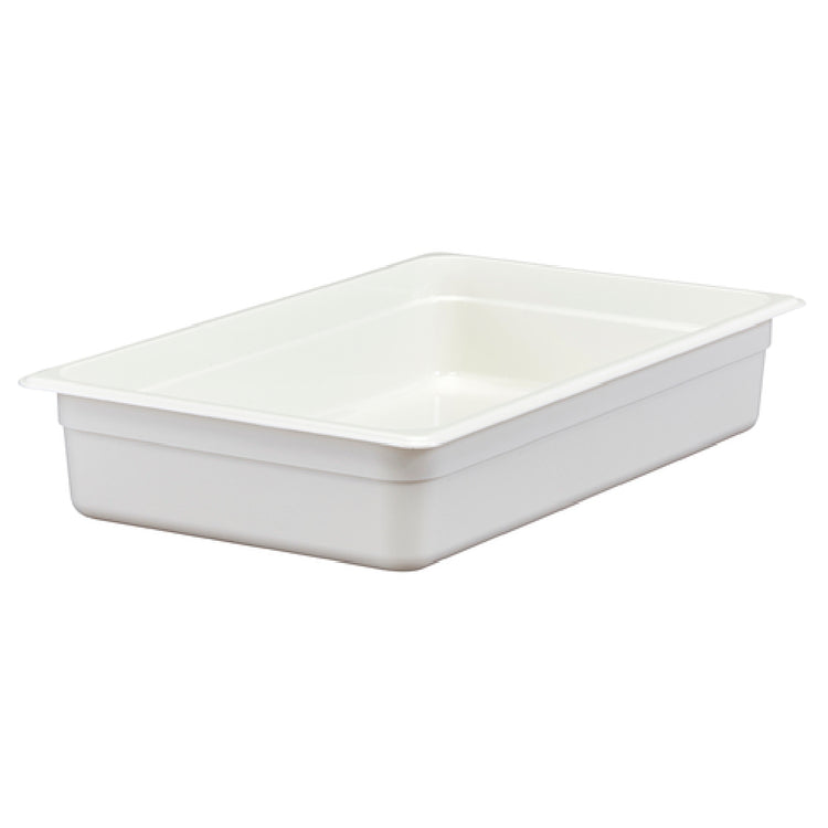 The Cambro 14CW148 Camwear® Food Pan is engineered for durability and versatility in food service applications, boasting a 13.7-quart capacity that accommodates a range of culinary tasks with ease. This food pan is full-sized and 4 inches deep, making it suitable for efficient storage and service in professional kitchens. Constructed from high-quality polycarbonate, it offers exceptional strength and shatter resistance, ensuring long-lasting performance even under rigorous commercial use. The white finish not only enhances visibility but also aligns with NSF standards for food safety and hygiene, making it a reliable choice for maintaining food quality. Its robust material composition makes it ideal for use in various segment markets, including restaurants, catering services, and institutional dining environments, where maintaining freshness and integrity of food products is crucial. The Cambro 14CW148 Camwear® Food Pan's design complements both cold and ambient temperature applications, providing flexibility in food preparation and presentation. Whether used for storage in a refrigerator or for serving at a buffet line, this food pan's practical design and reliable construction make it a valuable addition to any professional kitchen's inventory, emphasizing quality and practicality in food handling and storage solutions.