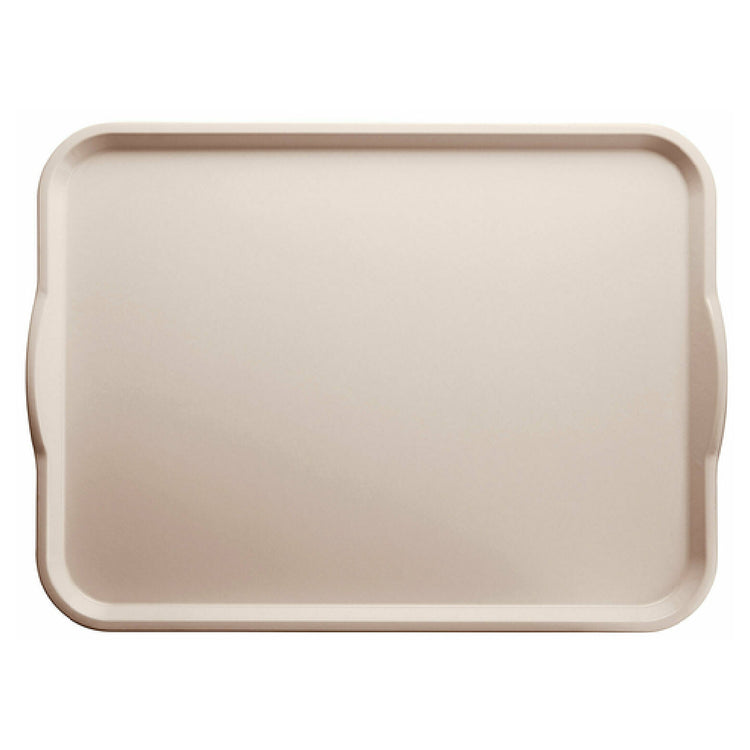 The Cambro 1520H101 Camtray® With Handles Rectangular is a versatile and durable serving solution designed for the food service industry. Measuring 15 inches by 20 inches, this rectangular tray is crafted from reinforced fiberglass, providing high-impact strength that ensures longevity in demanding environments. The tray's design incorporates conveniently integrated handles, facilitating easy carrying and maneuvering, ideal for both front-of-house and back-of-house operations. Its antique parchment color adds a touch of classic elegance, enhancing table presentations in settings ranging from cafeterias to upscale dining establishments. The Cambro 1520H101 is NSF certified, signifying its adherence to rigorous health and safety standards, making it a reliable choice for maintaining hygiene. This Camtray is especially suitable for restaurants, catering services, and institutional dining facilities that require robust and aesthetically pleasing serving solutions. Its construction ensures that it remains lightweight yet resilient under heavy use, while its smooth surface allows for easy cleaning and maintenance, crucial for high-turnover environments. The Cambro 1520H101 blends practicality with style, making it a valuable addition to any food service operation seeking quality and performance in their serving equipment.