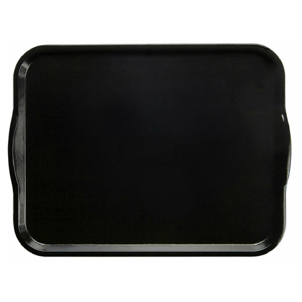 The Cambro 1520H110 Camtray® With Handles Rectangular is a versatile and durable tray designed to meet the rigorous demands of the food service industry. Measuring 15 inches by 20 inches, this rectangular tray is built from reinforced fiberglass, which provides exceptional high-impact strength, ensuring lasting durability even in high-traffic environments. Its black color presents a sleek and professional appearance, suitable for various service settings. An added convenience is its integrated handles, which offer improved grip and ease of transport, making it an ideal choice for fast-paced dining facilities, cafeterias, and catering services. The tray's construction is further validated by its NSF certification, assuring compliance with stringent public health and safety standards. The Cambro 1520H110 Camtray® efficiently serves different market segments, from institutional dining to upscale catering, providing a reliable solution for the presentation and transportation of meals. Its robust design and practical features cater to the unique needs of diverse food service operations, making it a valuable component in any professional kitchen setup.