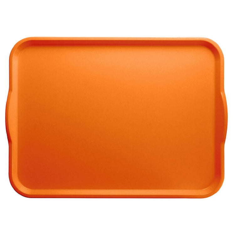 The Cambro 1520H222 Camtray® With Handles Rectangular is a high-performance serving solution, expertly crafted to meet the demands of various food service environments. This rectangular tray measures 15 inches by 20 inches, offering ample space for accommodating multiple dishes or large platters. Its construction from reinforced fiberglass ensures high-impact strength, making it an ideal choice for settings requiring durability and resilience, such as cafeterias, fast-food outlets, and institutional dining. The tray's vibrant orange pizzazz color adds a dynamic aesthetic appeal, helping to enhance presentation while facilitating easy identification in busy settings. Designed with convenient handles, the Cambro 1520H222 enhances ease of transport and handling, reducing the risk of spillage and improving service efficiency. Additionally, this Camtray® is NSF certified, signifying its compliance with strict standards for public health protection, making it a reliable choice for establishments prioritizing hygiene and safety. Suitable for a diverse range of market segments within the food service industry, the Cambro 1520H222 combines strength, functionality, and visual appeal, setting a standard for quality and reliability in professional kitchen operations.
