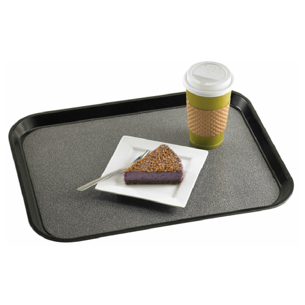 The Cambro 1520VC382 Versa Camtray® Rectangular 15" x 20" is a premium serving solution tailored for various industry segments, including hospitality and healthcare. This rectangular tray, measuring 15 inches by 20 inches, is constructed from high-quality fiberglass, offering remarkable durability and resilience. Its non-skid surface ensures safety by preventing items from slipping, making it particularly valuable in environments where stability is crucial. The tray's black color with a distinctive pebbled design adds an element of sophistication while maintaining a professional appearance. Certified by the National Sanitation Foundation (NSF), this tray meets the highest food safety standards, ensuring peace of mind with every use. Furthermore, it is Ecosafe, aligning with environmentally conscious practices. Designed to withstand the rigors of regular use, the tray is also dishwasher safe, allowing for effortless cleaning and maintenance. Whether used in bustling cafeterias, upscale restaurants, or healthcare facilities, the Cambro 1520VC382 Versa Camtray® provides a reliable, stylish, and functional serving option that caters to specific industry needs with precision and care.