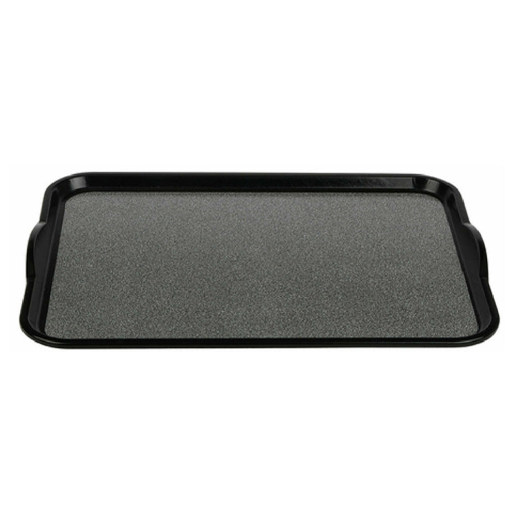 The Cambro 1520VCRST382 Versa Camtray® Room Service Style Rectangular tray is a sophisticated solution designed for efficient room service operations, measuring 15 inches by 20 inches. This lightweight tray is constructed from a sheet molded composite plastic, offering durability and resistance to wear. Its non-skid surface ensures that items remain securely in place during transport, reducing the risk of spills. The tray is dishwasher safe, simplifying cleaning and maintenance and allowing for quick reuse. Its elegant black color with a pebbled texture provides a sleek aesthetic that complements any service setting. The Cambro Versa Camtray® is Ecosafe and NSF certified, indicating its compliance with environmental standards and food safety regulations. This product is an excellent choice for hotels, healthcare facilities, and hospitality services looking for a reliable, high-quality tray that enhances the room service experience while ensuring safety and cleanliness standards are met.