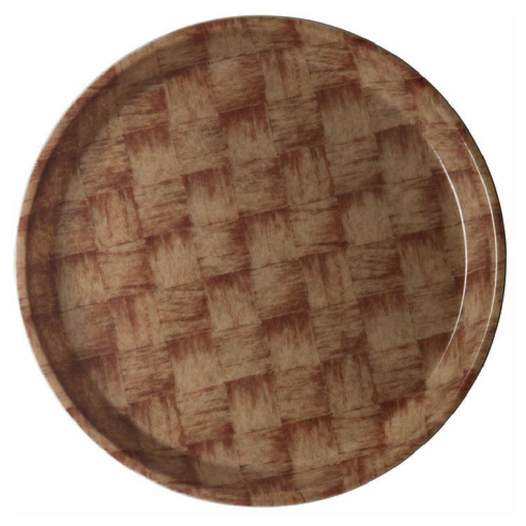 The Cambro 1550301 Serving Camtray® Round 16" Dia. is a versatile serving solution designed to meet the diverse needs of the food service industry. With a diameter of 16 inches, this Camtray® is crafted from durable fiberglass, offering both strength and lightweight handling for ease of use in fast-paced environments. Its low-profile design makes it an ideal choice for both casual and fine dining settings, allowing for an elegant presentation of dishes. The tray's dark basketweave pattern adds a touch of sophistication, complementing a variety of décor styles within restaurants, hotels, and catering services. Notably, the serving Camtray® is dishwasher safe, ensuring easy and efficient cleaning, which is essential for maintaining hygiene and quick turnover during busy service periods. Additionally, it holds the NSF certification, signifying its compliance with rigorous health and safety standards. This makes the Cambro 1550301 Serving Camtray® a reliable and high-quality option for establishments prioritizing both functionality and aesthetic appeal. Its robust construction and thoughtful design cater to the operational demands of commercial kitchens, enhancing the overall dining experience for both staff and guests alike.