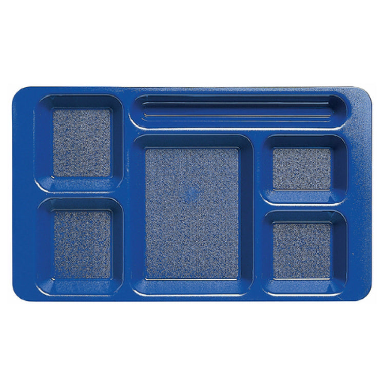 The Cambro 1596CW186 Camwear-2 x 2 Compartment Tray is a versatile 6-compartment, rectangular tray measuring 9 inches by 15 inches, designed for various food service environments. Made from durable Camwear polycarbonate, it is engineered to withstand the rigors of daily use while maintaining a clean and professional appearance. This tray features a gradual slope, ensuring that food items remain securely in place during transport and serving, reducing the risk of spills and ensuring a pleasant dining experience. It is dishwasher safe, offering convenience and efficiency in cleaning, and its navy blue color adds a touch of elegance to any setting. The tray is Ecosafe, highlighting its environmentally friendly design, and is NSF certified, ensuring it meets high standards for public health and safety. These characteristics make the Cambro 1596CW186 tray an excellent choice for schools, cafeterias, hospitals, and other institutions that require reliable, easy-to-maintain serviceware. Its robust construction and thoughtful design cater to the demands of high-volume food service operations, supporting efficient meal distribution while reducing environmental impact.