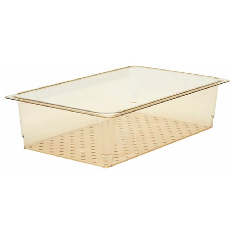 The Cambro 15CLRHP150 H-Pan™ Colander is a versatile kitchen essential designed specifically to fit full-size food pans, making it a valuable tool for commercial kitchens and food service operations. With a depth of 5 inches, this colander is engineered to meet the rigorous demands of professional environments. It boasts a wide temperature range of -40°F to 300°F, allowing it to be used in various conditions without compromising its integrity or performance. Constructed in an appealing amber color, this colander not only serves a functional purpose but also adds a touch of aesthetic appeal to your kitchen setup. The product is NSF certified, ensuring it meets the high standards required for safety and quality in food handling and preparation. Its durable construction is tailored to withstand the challenges of daily use, making it an ideal choice for chefs and kitchen staff who require reliable and efficient equipment. The Cambro 15CLRHP150 H-Pan™ Colander is an indispensable asset in the kitchen, offering both practicality and resilience for different segment markets within the food industry, including restaurants, catering services, and institutional kitchens.