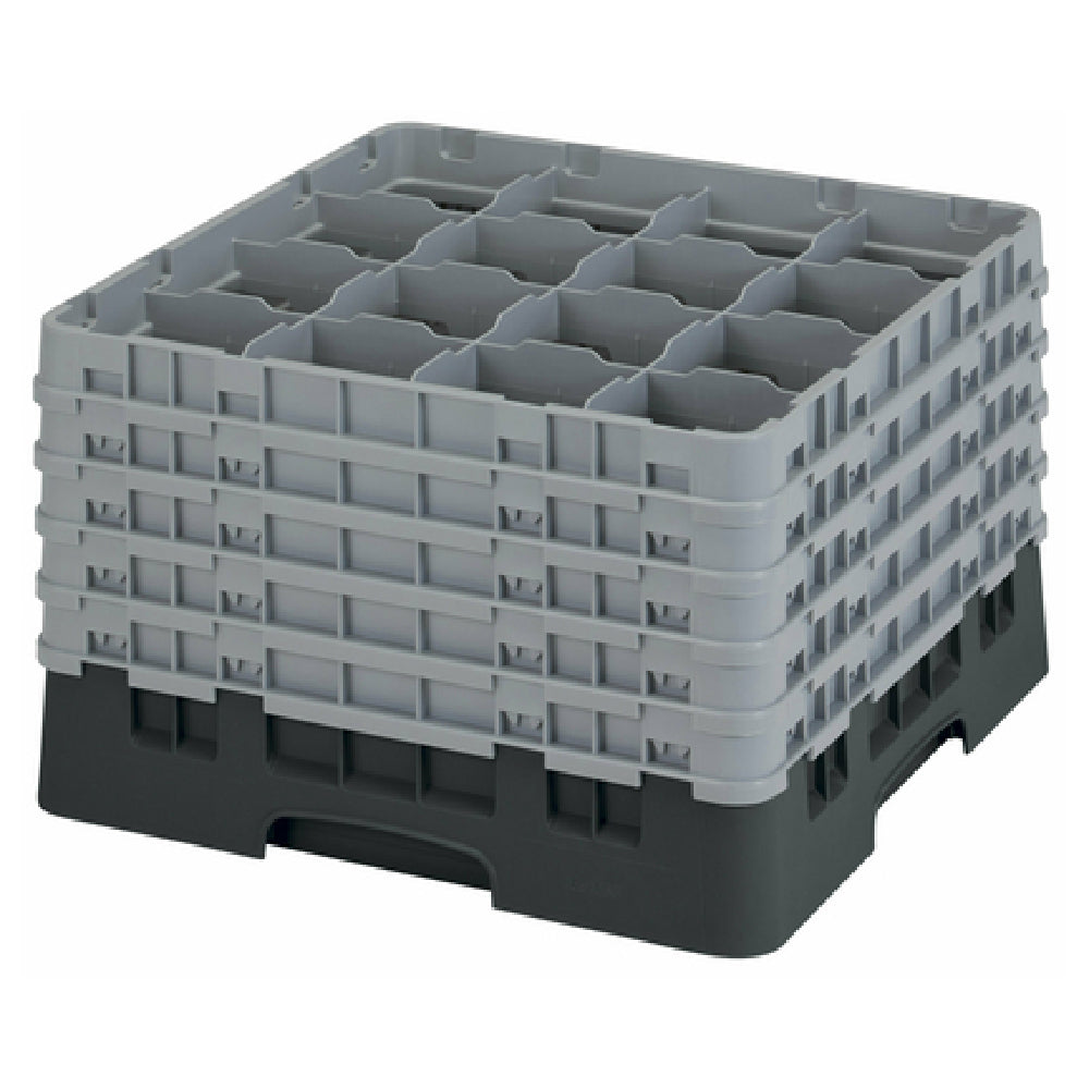 The Cambro 16S1058110 Camrack® Glass Rack With (5) Soft Gray Extenders Full Size is an essential asset for any food service operation requiring efficient glassware storage and transport. This Camrack measures 19-3/4 inches by 19-3/4 inches by 12-1/8 inches, providing a robust and full-size solution for glassware management. It features (16) compartments, each accommodating a maximum diameter of 4-3/8 inches and a maximum height of 11 inches, making it suitable for a variety of glass sizes. Designed with (5) soft gray extenders, this rack offers enhanced structural support and protection for your glassware during transit. The rack is finished in black, presenting a sleek and professional appearance for front-of-house operations. Its design is HACCP compliant, providing assurance in maintaining high food safety standards, and is NSF certified, confirming its adherence to public health and safety requirements. Ideal for restaurants, catering services, and other hospitality venues, the Cambro 16S1058110 Camrack® Glass Rack provides a practical and reliable solution for glassware storage and transportation needs, ensuring the safety and integrity of your items while optimizing space and efficiency in various operational settings.