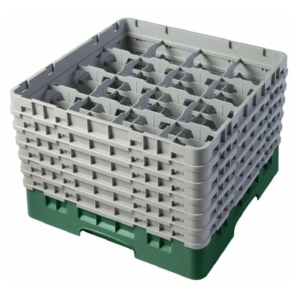 The Cambro 16S1114119 Camrack® Glass Rack with (6) Soft Gray Extenders represents a high-performance solution designed for efficient glassware handling in hospitality and catering environments. This full-size rack measures 19-3/4" x 19-3/4" x 13-3/4", offering a substantial frame to accommodate a variety of glassware. With its (16) compartments, it supports a maximum diameter of 4-3/8" and a maximum height of 11-3/4", making it suitable for a wide range of glass sizes. The addition of (6) soft gray extenders enhances its adaptability, allowing for secure stacking and transportation. The Sherwood green coloration not only provides a visually appealing look but also assists in quick identification and organization within busy operations. As a HACCP compliant tool, it aligns with critical health and safety standards, while being NSF certified further assures its quality and reliability in maintaining hygiene. This glass rack is ideal for industries that prioritize sanitary glassware management, such as restaurants, hotels, and banquet services, where seamless operations are paramount. Cambro’s commitment to quality ensures that the Camrack® Glass Rack delivers consistent performance, making it a smart choice for professionals seeking efficiency and durability in their glassware storage and transportation systems.