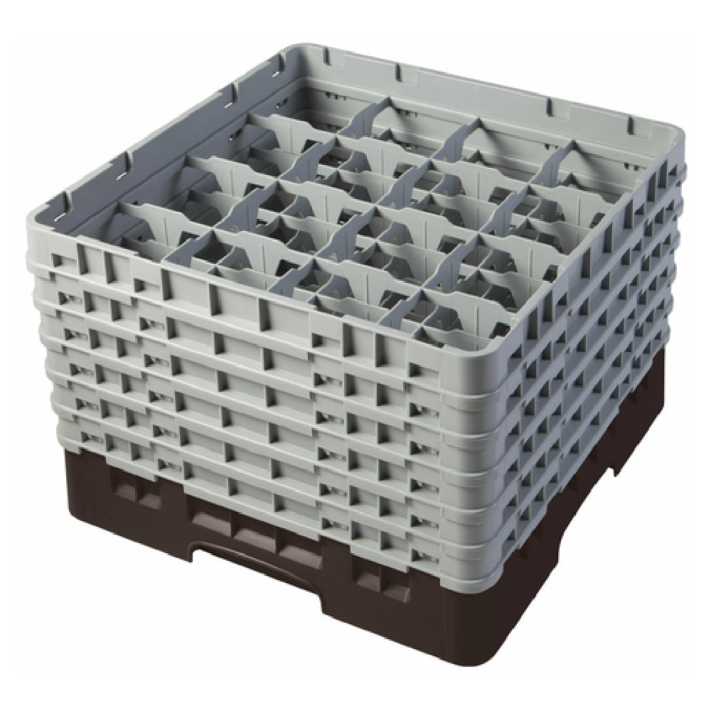 The Cambro 16S1114167 Camrack® Glass Rack with (6) soft gray extenders full size is an efficiently designed storage solution for various glassware needs in foodservice and hospitality industries. Measuring 19-3/4" x 19-3/4" x 13-3/4", this glass rack provides ample space with its 16 compartments, each accommodating a maximum diameter of 4-3/8" and a maximum height of 11-3/4". The inclusion of six soft gray extenders enhances its capacity and flexibility, making it suitable for diverse glass sizes while ensuring secure transport and storage. The rack’s full-size design is complemented by its robust brown construction, which is both HACCP compliant and NSF certified, affirming its adherence to stringent safety and hygiene regulations. This glass rack is an essential asset for restaurants, caterers, and bars, offering durability and reliable glass protection during washing, storage, and transportation. Its thoughtful engineering emphasizes practicality and industry standards compliance, ensuring the safe handling of glassware in high-volume settings.