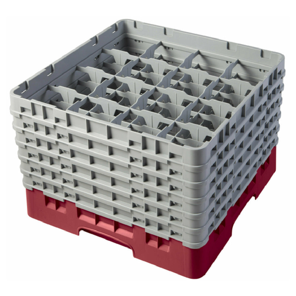 The Cambro 16S1114416 Camrack® Glass Rack with (6) Soft Gray Extenders Full Size is a purpose-built solution designed to enhance the efficiency and safety of glassware handling in various commercial settings. It features a full-size design, measuring 19-3/4" x 19-3/4" x 13-3/4", and includes 16 compartments, each capable of accommodating glassware with a maximum diameter of 4-3/8" and a height of up to 11-3/4". The inclusion of six soft gray extenders provides additional vertical capacity, making it especially useful for operations requiring transport or storage of taller glassware. This glass rack is presented in a striking cranberry color, offering an aesthetically pleasing appearance while ensuring high visibility in busy environments. The product is HACCP compliant, facilitating adherence to food safety protocols, and it is certified by NSF, underscoring its compliance with rigorous health and safety standards. Whether used in bustling restaurants, catering services, or large-scale event venues, the Cambro 16S1114416 Camrack® Glass Rack provides unmatched durability and practical utility, tailored to meet the needs of professionals in the food service industry. Its thoughtful design and robust construction make it a vital asset for maintaining the quality and safety of glassware.