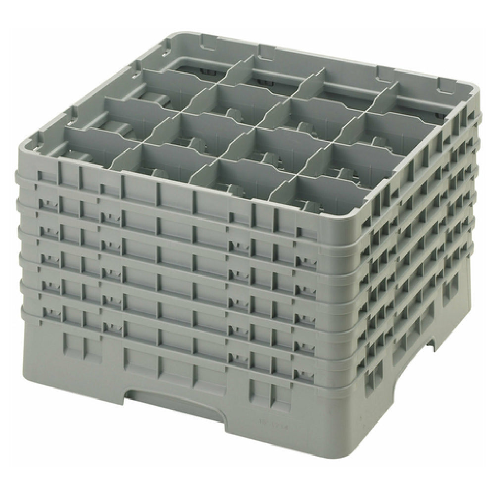 The Cambro 16S1214151 Camrack® Glass Rack With (6) Soft Gray Extenders Full Size is an expertly designed solution for efficient glassware management in the foodservice industry. Measuring 19-3/4" x 19-3/4" x 13-3/4", this glass rack provides ample space for organizing and protecting glassware in transit and storage. It features 16 compartments, each accommodating a maximum diameter of 4-3/8" and a maximum height of 12-5/8", ensuring that various sizes of glassware fit comfortably. The inclusion of six soft gray extenders enhances its versatility, adapting to different glass heights and providing additional support. The soft gray color not only contributes to its aesthetic appeal but also indicates its HACCP compliance, aligning with health and safety standards crucial for foodservice operations. As an NSF-certified product, the Cambro Camrack® Glass Rack underscores its commitment to maintaining quality and safety standards, making it a reliable choice for restaurants, bars, and catering services. This glass rack is an essential tool for any establishment looking to streamline its glassware operations while ensuring the utmost care and hygiene.