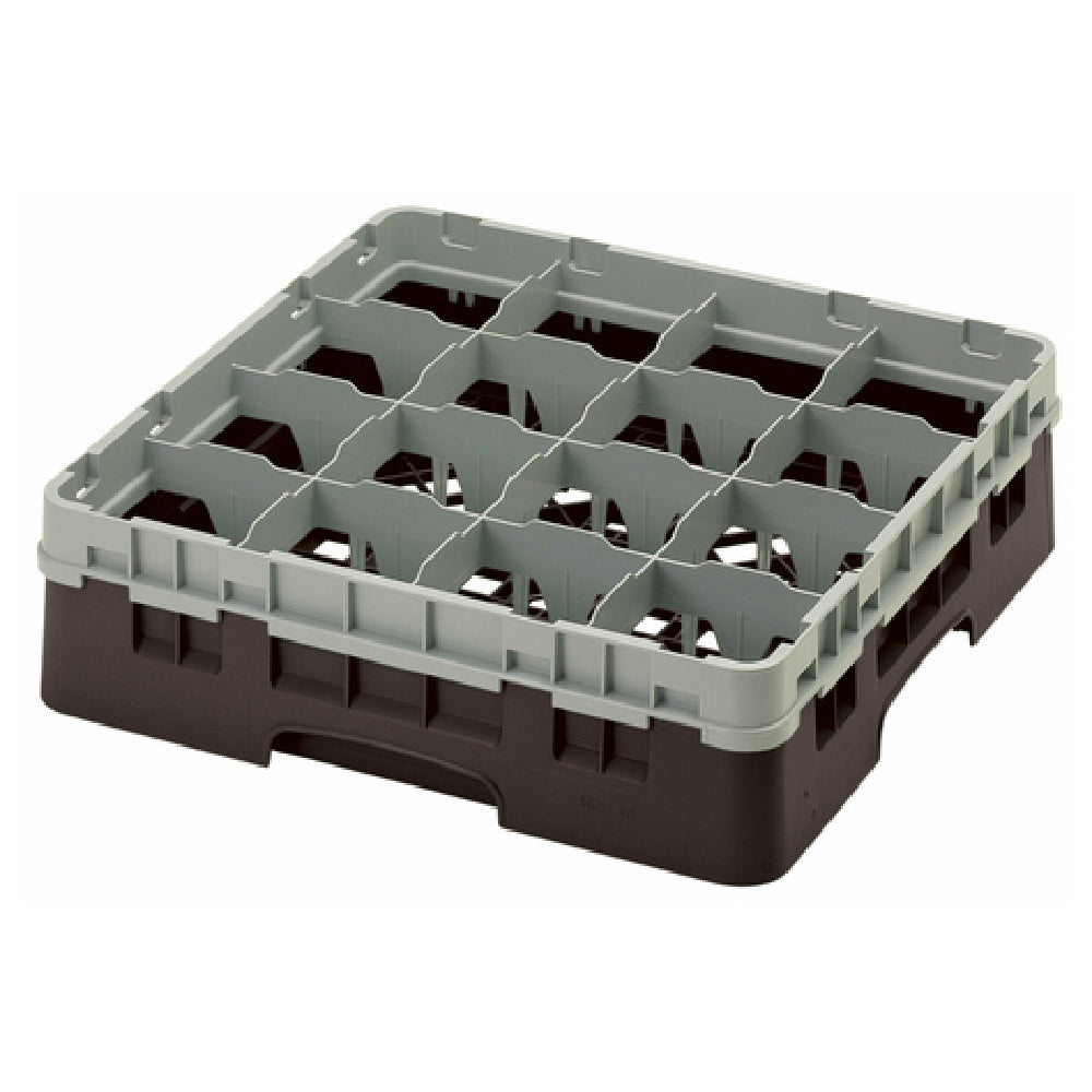 The Cambro 16S418167 Camrack® Glass Rack With Soft Gray Extender Full Size is a precise solution for catering and hospitality sectors that require meticulous glassware management. This glass rack measures 19-3/4" x 19-3/4" x 5-5/8", offering a full-size configuration suitable for various operational needs. It features 16 compartments, each accommodating glassware with a maximum diameter of 4-3/8" and a height of up to 4-1/2", ensuring a versatile fit for most glass types used in the industry. The inclusion of a soft gray extender enhances the rack's structural stability, facilitating secure stacking during transport and storage. Its brown color adds a professional aesthetic, aligning with industry standards. Notably, the Camrack® is HACCP compliant, supporting food safety management systems, and carries NSF certification, attesting to its compliance with rigorous public health standards. This glass rack is an essential utility for establishments like restaurants, hotels, and event venues that prioritize organized and hygienic glassware storage and transport, optimizing operational efficiency with its specialized design. The robust construction and compliance credentials of the Cambro 16S418167 underscore its suitability for rigorous commercial use, catering to diverse market segments within the food service industry.