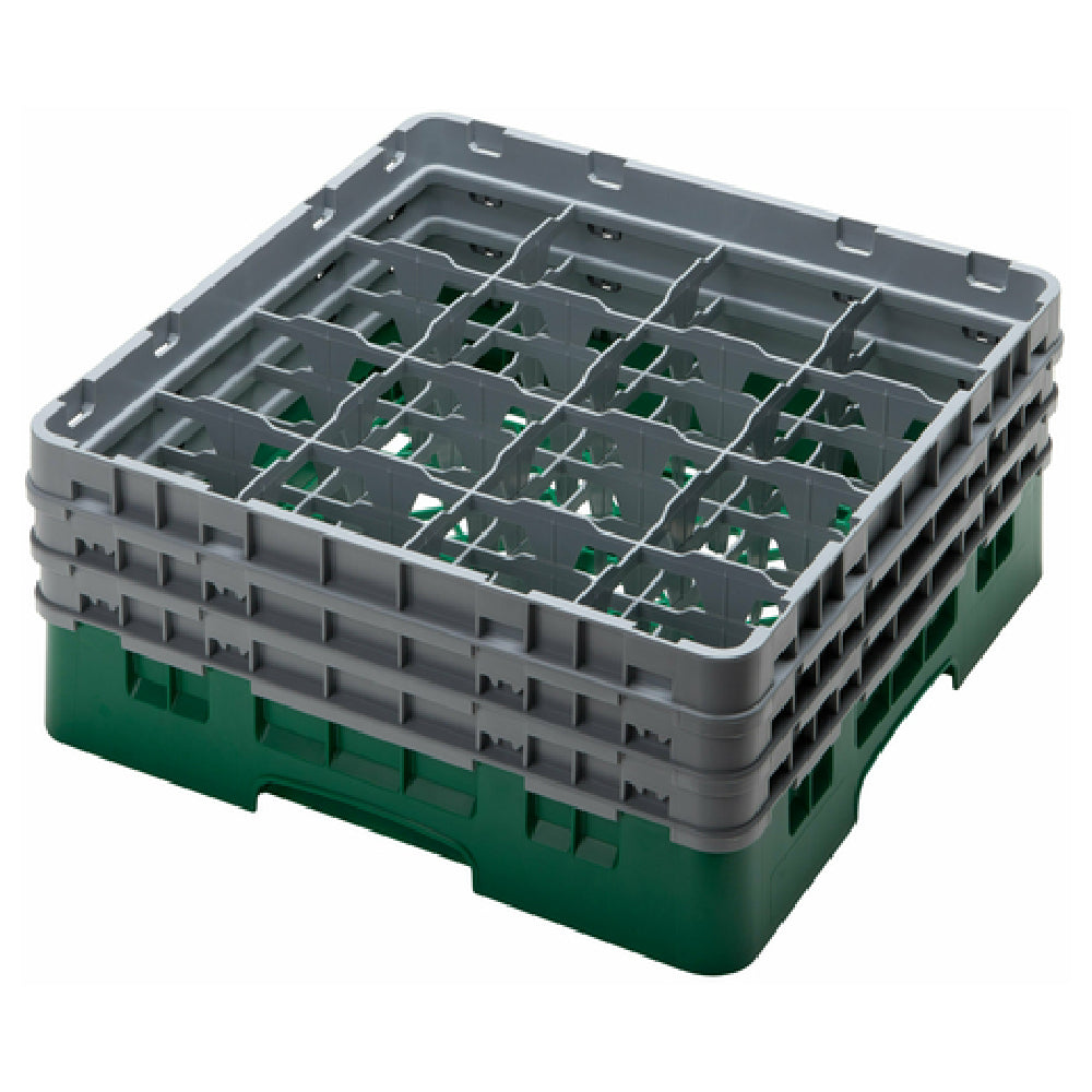 The Cambro 16S638119 Camrack® Glass Rack With (3) Soft Gray Extenders Full Size is an expertly designed storage solution, engineered to meet the rigorous demands of the food service industry. Measuring 19-3/4" x 19-3/4" x 8-7/8", this full-size rack boasts (16) compartments, each accommodating glasses with a maximum diameter of 4-3/8" and a height of up to 6-7/8". The inclusion of three soft gray extenders enhances its capacity, allowing for efficient stacking and secure storage of a variety of glassware. Constructed with a Sherwood green finish, this Camrack® is HACCP compliant, ensuring that it meets stringent food safety standards. Additionally, it carries NSF certification, underscoring its adherence to public health and sanitation standards. This rack is particularly valuable in sectors like hospitality and catering where hygiene and efficiency are paramount. Its technical specifications and thoughtful design make the Cambro 16S638119 an indispensable asset for professionals seeking a reliable and effective glass storage solution.