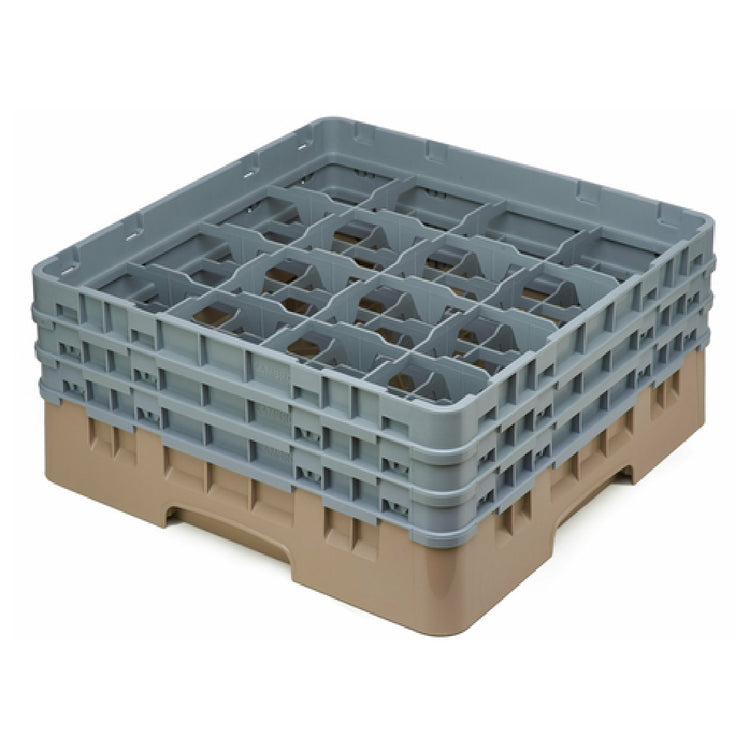 The Cambro 16S638184 Camrack® Glass Rack With (3) Soft Gray Extenders Full Size is expertly designed to accommodate the diverse needs of foodservice operations, catering establishments, and hospitality venues. Featuring a robust structure measuring 19-3/4" x 19-3/4" x 8-7/8", this full-size glass rack efficiently facilitates the organization and protection of glassware during washing and storage. It includes sixteen compartments, each capable of holding glasses with a maximum diameter of 4-3/8" and a maximum height of 6-7/8". The addition of three soft gray extenders enhances its capacity and versatility, making it suitable for various glass types and sizes. Constructed in an attractive beige color, the Cambro Camrack® is both functional and aesthetically pleasing, ensuring seamless integration into any operational environment. Its compliance with HACCP standards and NSF certification guarantees adherence to stringent hygiene and safety regulations, making it a reliable choice for maintaining cleanliness and preventing cross-contamination. This combination of practical design and compliance underscores the Cambro 16S638184 Camrack® Glass Rack’s unique value proposition: a reliable and versatile solution for optimal glassware management in professional settings.
