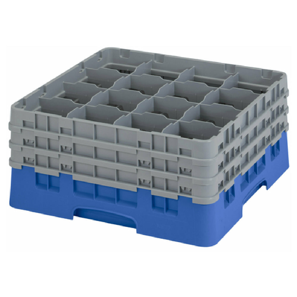 The Cambro 16S738168 Camrack® Glass Rack with (3) Soft Gray Extenders is a full-size solution designed for optimizing glassware storage and transport in professional settings. Measuring 19-3/4" x 19-3/4" x 8-7/8", this glass rack offers (16) compartments, each accommodating glassware with a maximum diameter of 4-3/8" and a maximum height of 7-3/4". The inclusion of (3) soft gray extenders enhances the rack’s capacity, offering flexibility in managing varying glass sizes while ensuring stability and protection during handling. Its distinctive blue hue not only adds a touch of color but also aids in easy identification in storage areas. The Cambro Camrack® is HACCP compliant, underscoring its suitability for maintaining food safety and hygiene standards, and it meets NSF certification requirements, ensuring adherence to public health and safety guidelines. This product is ideal for use in restaurants, bars, and catering services where efficient glassware management is essential, providing a reliable and organized solution for busy food service environments. The innovative design and robust construction make it a practical choice for industry professionals seeking durability and efficiency in their operations.