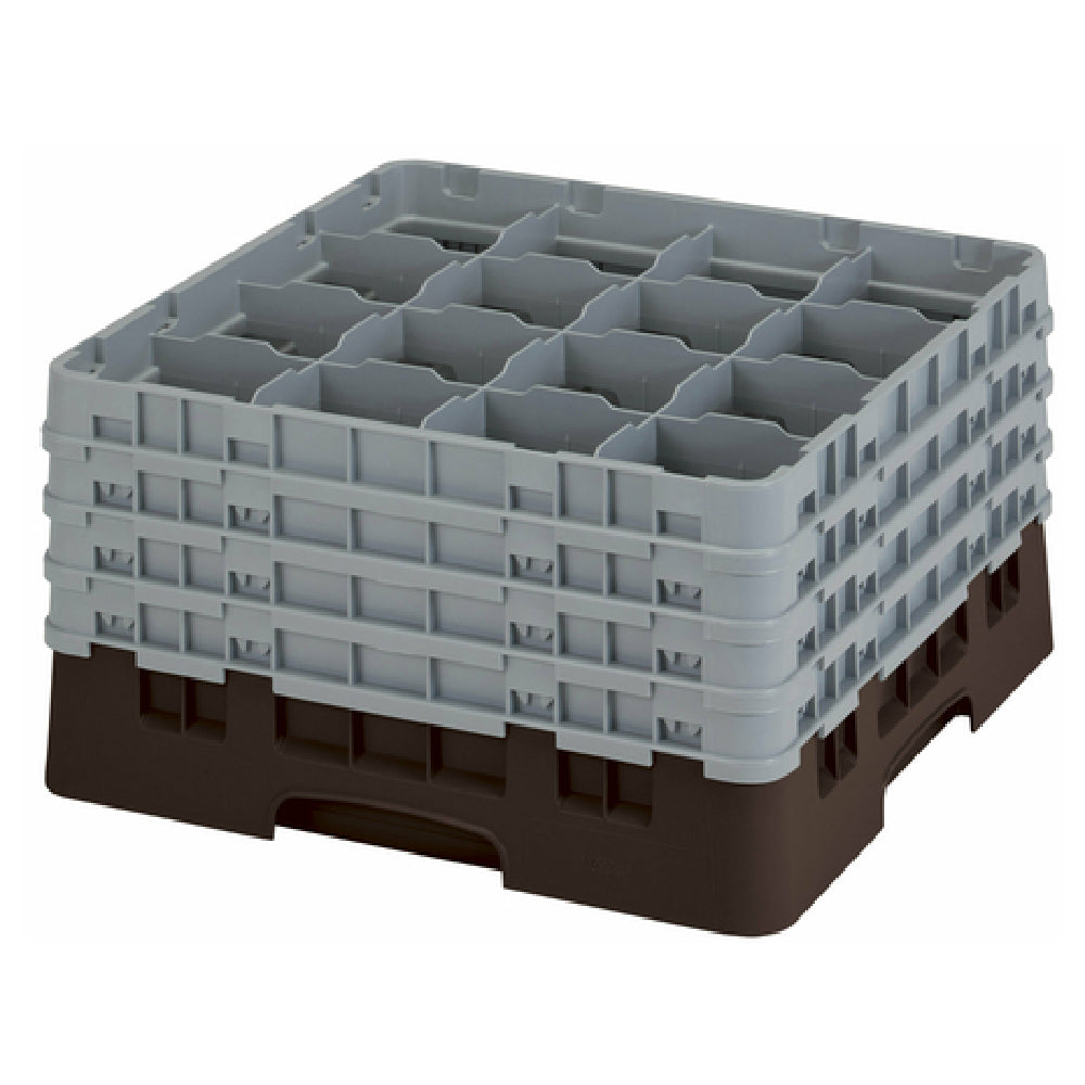 The Cambro 16S900167 Camrack® Glass Rack with (4) Soft Gray Extenders Full Size is a meticulously engineered solution for efficient glassware management. Measuring 19-3/4 inches by 19-3/4 inches by 10-1/2 inches, this full-size rack accommodates up to 16 compartments, each capable of holding glassware with a maximum diameter of 4-3/8 inches and a maximum height of 9-3/8 inches. The inclusion of four soft gray extenders allows for customizable stacking, enhancing storage capacity while ensuring the safe handling of delicate glass items. This glass rack is available in an attractive brown color, making it both functional and aesthetically pleasing. Notably, the Cambro 16S900167 is HACCP compliant, emphasizing its adherence to international food safety standards, and bears the NSF certification, signifying its compliance with rigorous public health and safety standards. The robust design makes it suitable for diverse market segments within the foodservice industry, from upscale dining establishments to high-volume catering operations, where cleanliness and efficiency are paramount. This glass rack not only facilitates the streamlined transport and washing of glassware but also guarantees durability and reliability, making it an essential asset for any establishment committed to maintaining high operational standards.