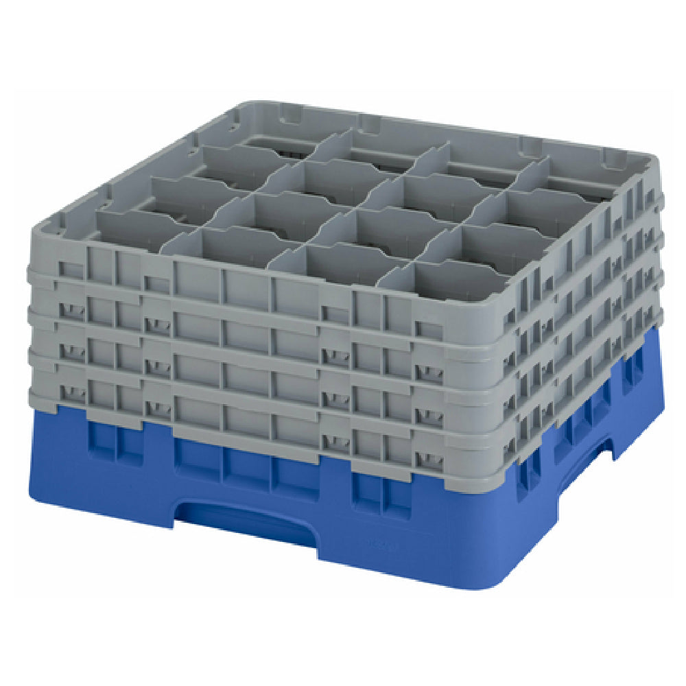 The Cambro 16S900168 Camrack® Glass Rack with (4) Soft Gray Extenders Full Size is an essential tool for efficient glassware management in the food service industry. This full-size rack measures 19-3/4" x 19-3/4" x 10-1/2", providing a robust structure for handling multiple items with ease. Equipped with 16 compartments, each capable of accommodating a glass up to a 4-3/8" maximum diameter and a 9-3/8" maximum height, this rack ensures excellent organization and protection for glassware. The inclusion of four soft gray extenders enhances its capacity and versatility, making it suitable for a variety of glass sizes and shapes. The rack is colored in a distinctive blue, making it easily identifiable and aesthetically pleasing. Complying with both HACCP and NSF standards, this glass rack underscores its commitment to upholding the highest health and safety protocols. Ideal for use in restaurants, bars, and caterers, the Cambro 16S900168 is designed to streamline operations, reduce breakage, and maximize storage efficiency. Its thoughtful design and durable construction make it a reliable choice for professionals seeking to enhance their glassware handling and storage solutions.