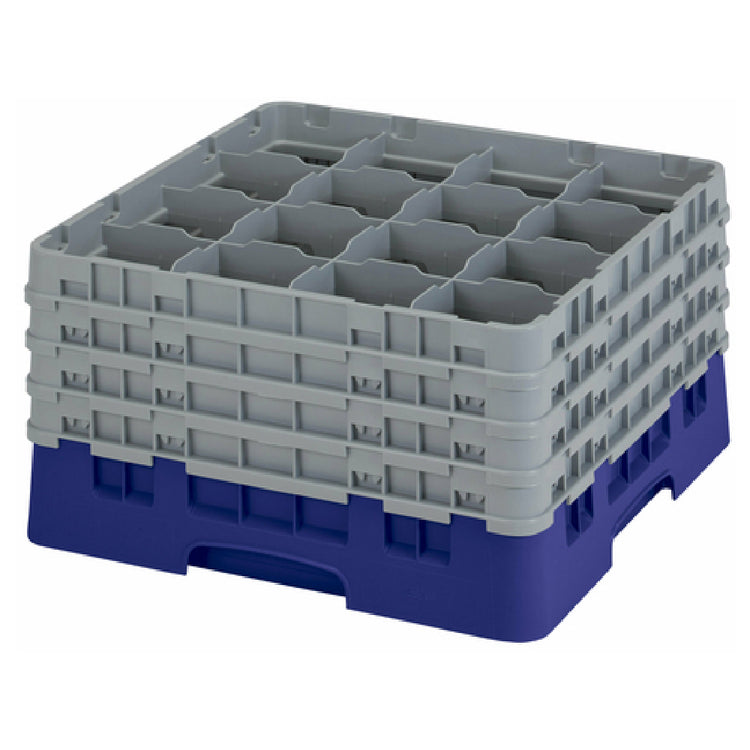 The Cambro 16S900186 Camrack® Glass Rack with (4) Soft Gray Extenders Full Size is engineered for optimal glassware protection and organization, making it a standout solution in the hospitality and food service industry. This full-size rack measures 19-3/4" x 19-3/4" x 10-1/2", providing ample space with 16 compartments tailored for glassware with a maximum diameter of 4-3/8" and a maximum height of 9-3/8". Each unit is equipped with four soft gray extenders, which enhance the rack's versatility and adaptability to various glass sizes, offering additional protection during storage and transportation. The rack is presented in a striking navy blue color, adding a professional and visually appealing element to your storage solutions. Not only is this glass rack HACCP compliant, ensuring it meets critical food safety standards, but it is also certified by NSF, assuring quality and safety in commercial environments. Whether you're operating a bustling bar, a high-volume restaurant, or an event catering service, the Cambro 16S900186 provides a reliable and efficient way to manage and safeguard your glassware, supporting operational efficiency and hygiene in the process.