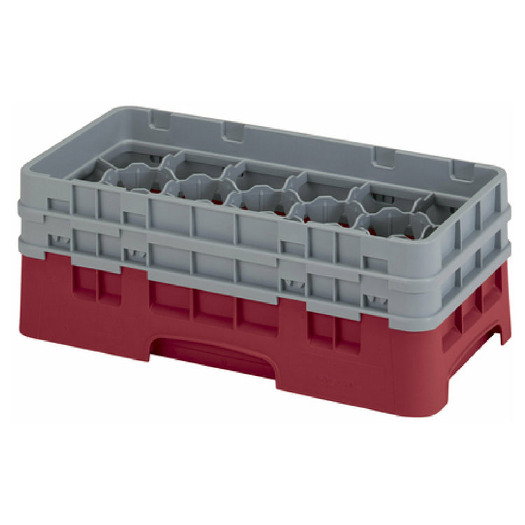 The Cambro 17HS434416 Camrack® Glass Rack with (2) Soft Gray Extenders Half Size is an exceptional solution for organized and efficient glassware storage. Designed with compact dimensions of 10" x 19-3/4" x 7-1/4", this half-size rack is versatile for various industry applications. Featuring 17 compartments, each with a maximum diameter of 2-7/8" and a maximum height of 5-1/4", the Cambro 17HS434416 accommodates a wide range of glass types while ensuring secure storage and transportation. The inclusion of two soft gray extenders enhances the rack's adaptability, making it suitable for different glass sizes and shapes. Constructed with a vibrant cranberry color, this glass rack is not only functional but also visually appealing. Compliant with HACCP standards, it ensures safe storage practices, and its NSF certification highlights its adherence to stringent public health and safety requirements. This Camrack® is particularly valuable for commercial kitchens, catering businesses, and hospitality venues, offering a reliable and efficient solution for glassware management to optimize storage space and ensure the longevity of glass items. The Cambro 17HS434416 is a practical and essential tool for any establishment focused on maintaining high standards of cleanliness and organization.