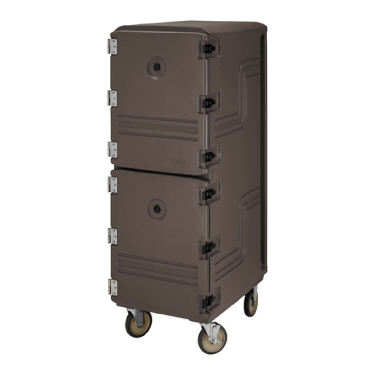 Cambro 1826DBC131 Camcart® Double Cavity for Food Storage Boxes is a highly functional solution for transporting and storing food safely within commercial kitchens and catering operations. With dimensions of 33-1/4"L x 21-1/2"D x 64"H, this Camcart® boasts a double cavity design, providing ample space and organization for food storage needs. It features 26 support rails spaced at 1-3/4" centers, offering versatile accommodation for various food storage box sizes. Constructed from durable polyethylene and insulated with foam, this unit ensures optimal temperature retention and food safety. The molded-in handle design enhances ease of maneuverability, while its mobility is further supported by four 6" casters, two of which are fixed, and two are swivel, including one with a brake for secure positioning. Available in a dark brown hue, this Camcart® is NSF certified, reflecting its adherence to high standards of public health and safety. Ideal for food service establishments, including restaurants, catering services, and institutional kitchens, the Cambro 1826DBC131 Camcart® delivers reliable performance and functionality, helping professionals maintain the integrity and quality of stored food items.