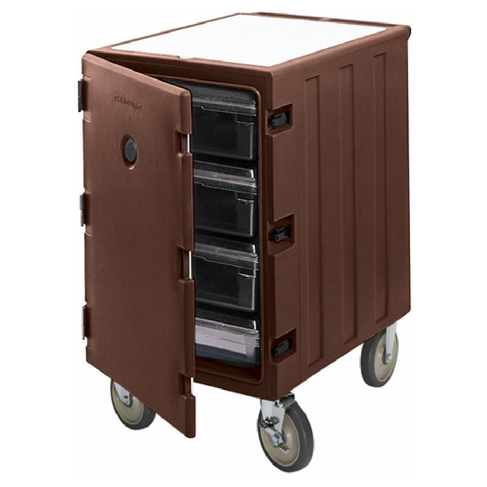 The Cambro 1826LBC131 Camcart® For Food Storage Boxes is a versatile food service solution designed to enhance efficiency and convenience in various culinary environments. With dimensions of 32"L x 21-1/2"W x 37-1/2"H, this Camcart® is specifically engineered to accommodate 18" x 26" food storage boxes, making it a practical choice for kitchens that require organized storage and easy access to ingredients. A standout feature is its removable cutting board on top, providing a dual functionality that streamlines food preparation tasks. Equipped with 13 supports placed 1-3/4" apart, the Camcart® offers reliable stability and adaptability for storing various box configurations. Its mobility is ensured by four 6" casters, including two fixed, two swivel, and one with a brake, facilitating smooth transport and secure placement within bustling kitchen spaces. Constructed in an elegant dark brown finish, this unit is NSF certified, guaranteeing adherence to strict public health and safety standards. The Cambro 1826LBC131 Camcart® For Food Storage Boxes is an essential asset for professional kitchens, catering services, and food storage facilities, delivering an effective storage solution with added functional work surface capabilities.