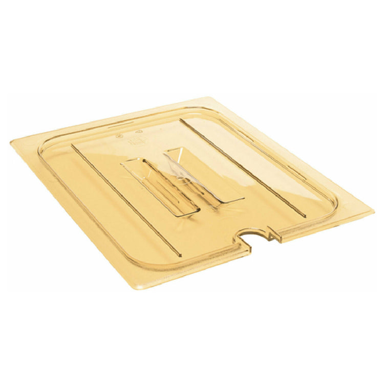 The Cambro 20HPCHN150 H-Pan™ Cover 1/2 Size High Heat is an expertly engineered kitchen accessory designed for demanding culinary environments. This high-heat cover is tailored to fit half-size pans, providing an essential solution for both storage and cooking needs. The cover is notched and equipped with a handle, offering ease of use and convenience during food preparation and service. Its temperature resilience is remarkable, withstanding a range from -40°F to 300°F, making it suitable for various applications, from cold storage to high-temperature cooking. Constructed with a non-stick surface, the cover ensures easy cleaning and maintenance, enhancing operational efficiency. Additionally, the cover's durability is highlighted by its resistance to bending and denting, promising long-lasting performance in professional kitchens. The amber color not only signifies its high-heat capability but also aids in quick identification among kitchen equipment. NSF certification attests to its high standards of safety and sanitation, making it a trusted choice for foodservice establishments. Whether in bustling commercial kitchens or institutional settings, the Cambro 20HPCHN150 H-Pan™ Cover offers a combination of practicality and reliability, catering to diverse market segments within the food industry.
