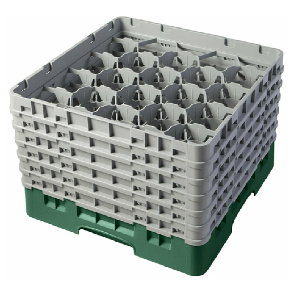 The Cambro 20S1114119 Camrack® Glass Rack with (6) soft gray extenders is a full-size rack designed to facilitate the efficient and safe storage of glassware in various settings. Its dimensions are 19-3/4" x 19-3/4" x 13-3/4", providing ample space for a range of glassware needs. Featuring 20 compartments, each with a maximum diameter of 3-7/8" and a maximum height of 11-3/4", this glass rack is ideal for accommodating a variety of glass sizes securely. The rack is Sherwood green and HACCP compliant, ensuring it meets stringent hygiene and safety standards critical in the food service industry. Additionally, it carries the NSF certification, highlighting its adherence to public health and safety standards. The inclusion of six soft gray extenders makes this rack particularly adaptable, allowing users in hotels, restaurants, and catering services to customize the rack height to fit specific glassware. This flexibility ensures maximum protection and minimizes breakage, offering significant value for establishments needing reliable and durable glassware storage solutions. The Cambro 20S1114119 Camrack® Glass Rack is an essential tool for any venue requiring efficient glassware management, combining robust construction with thoughtful design to enhance operational efficiency.
