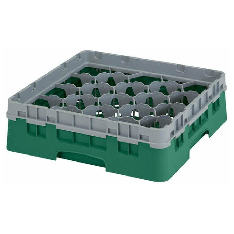 The Cambro 20S318119 Camrack® Glass Rack With Soft Gray Extender Full Size is a meticulously designed product ideal for efficient and organized glassware storage, addressing the needs of various professional settings such as restaurants, catering services, and hospitality venues. Measuring at 19-3/4" x 19-3/4" x 5-5/8", this full-size glass rack features 20 compartments, each with a maximum diameter of 3-7/8" and a maximum height of 3-5/8", ensuring secure accommodation for a wide range of glass sizes. The inclusion of a soft gray extender allows for added flexibility and compartmental depth, adapting to your specific glassware requirements. The Sherwood green rack not only provides a robust and durable solution for glass storage but also aligns with HACCP compliance standards, ensuring hygiene and safety in food service operations. Additionally, its NSF certification guarantees that the rack meets the highest public health and safety standards. This makes the Cambro 20S318119 Camrack® a reliable choice for maintaining the integrity and cleanliness of glassware in high-demand environments, offering efficient storage and handling solutions that professionals in the foodservice industry can trust.