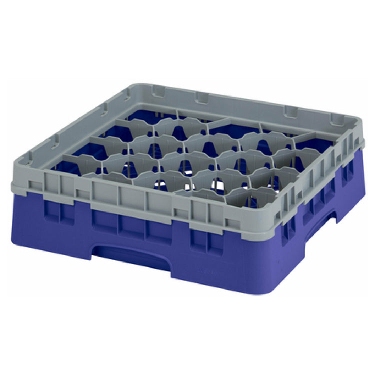 The Cambro 20S318186 Camrack® Glass Rack With Soft Gray Extender Full Size is meticulously designed to meet the demanding needs of the food service and hospitality industries. Measuring 19-3/4" x 19-3/4" x 5-5/8", this full-size glass rack features 20 compartments, each accommodating glasses with a maximum diameter of 3-7/8" and a maximum height of 3-5/8". The rack is aesthetically finished in navy blue, enhanced with a soft gray extender that increases its functionality while maintaining an elegant appearance. Its HACCP compliance ensures adherence to food safety standards, making it an ideal choice for establishments prioritizing hygiene and safety. Furthermore, being NSF certified, this product guarantees quality and reliability for professional use. The Cambro Camrack® Glass Rack is designed to efficiently organize and protect glassware during washing and storage, offering an essential solution for restaurants, bars, and catering services that require efficient glass management. Its durable construction promises longevity, while the detailed compartmentalization caters to varied glass sizes, making it a versatile tool within the industry.