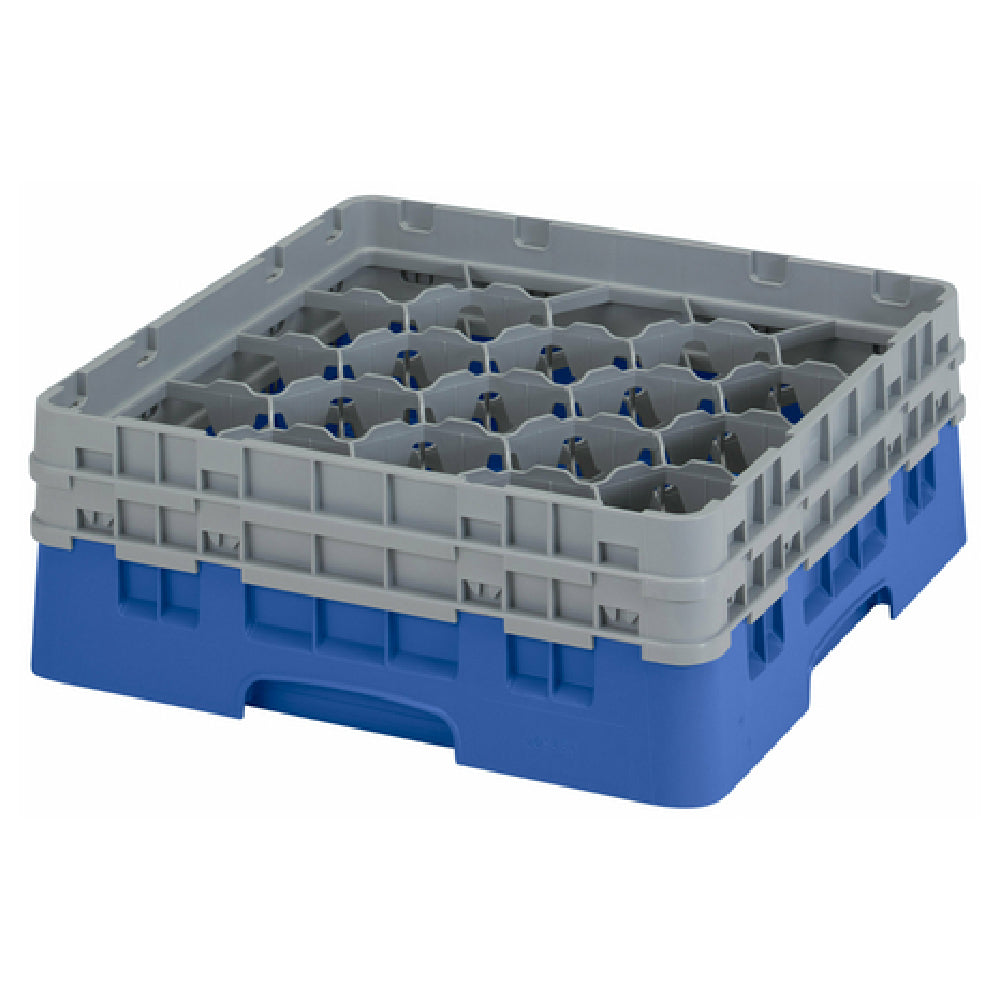 The Cambro 20S434168 Camrack® Glass Rack with (2) Soft Gray Extenders Full Size is a meticulously designed storage solution tailored for the food service industry, boasting precise dimensions of 19-3/4" x 19-3/4" x 7-1/4". This glass rack features 20 individual compartments, each accommodating a maximum diameter of 3-7/8" and a maximum height of 5-1/4", ensuring secure and organized storage of various glassware sizes. The inclusion of two soft gray extenders enhances its capacity, making it a versatile choice for establishments with diverse glassware requirements. The Camrack's blue color not only adds a touch of distinction but also aids in easy identification in busy kitchen environments. Furthermore, this product is HACCP compliant, aligning with stringent food safety standards, and is NSF certified, underscoring its commitment to quality and reliability. The Cambro 20S434168 is particularly valuable for restaurants, hotels, and catering services seeking a durable and efficient glassware storage solution that ensures both safety and organization. Its robust construction and thoughtful design make it an indispensable asset in maintaining the highest standards of cleanliness and convenience across different market segments within the industry.