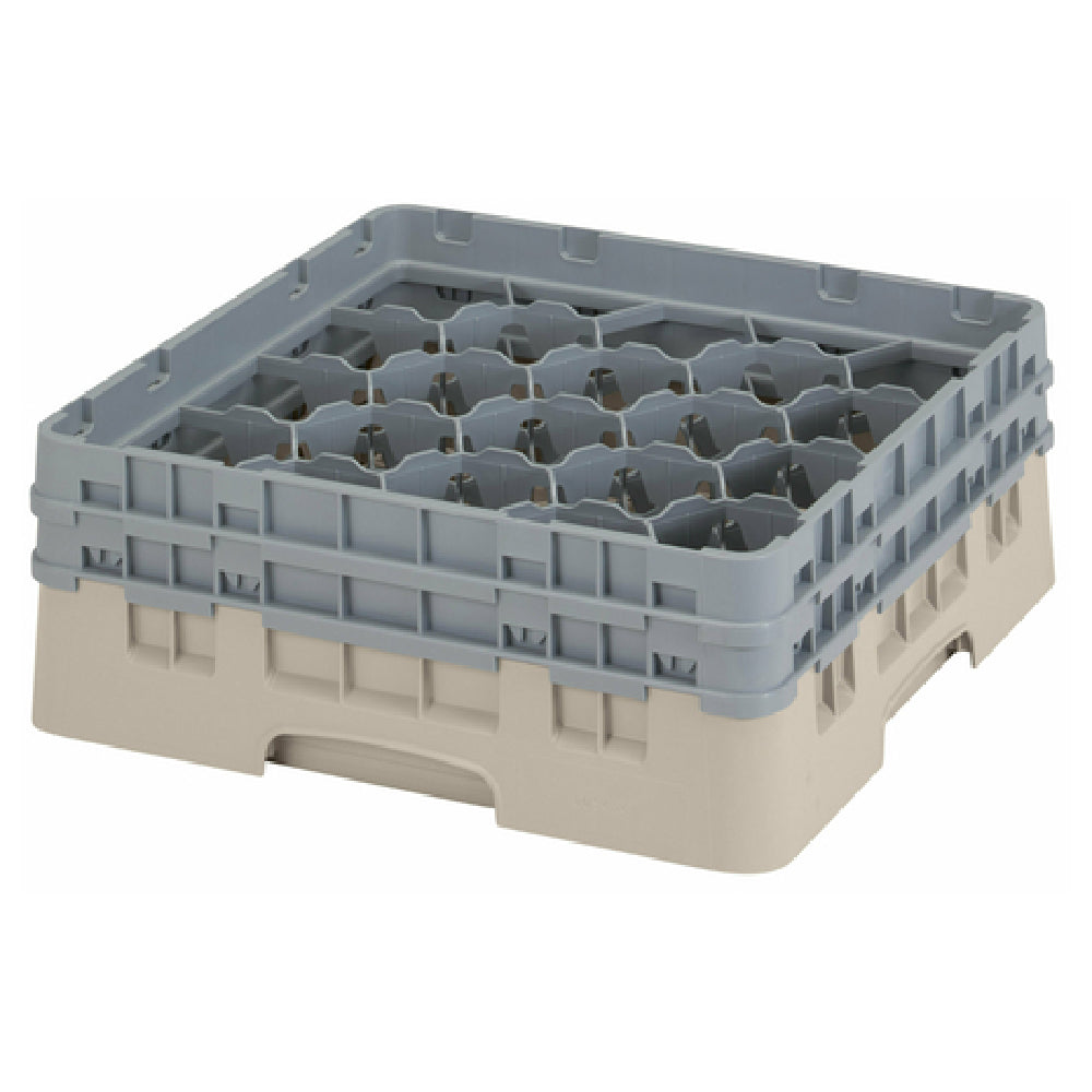 The Cambro 20S434184 Camrack® Glass Rack with (2) soft gray extenders is a meticulously engineered solution designed to streamline glassware management in food service operations. This full-size glass rack measures 19-3/4" x 19-3/4" x 7-1/4", providing ample space for efficient storage and transportation. It features 20 compartments, each accommodating glasses up to 3-7/8" in maximum diameter and 5-1/4" in maximum height, making it an ideal choice for a variety of glassware. The included soft gray extenders enhance the rack's versatility, allowing it to cater to taller items while maintaining stability and protection. Crafted in a beige color, the Cambro Camrack® Glass Rack is HACCP compliant, aligning with industry standards for food safety, and NSF certified, ensuring adherence to public health guidelines. This product is particularly beneficial for commercial kitchens, bars, and catering services seeking a durable and reliable glassware management solution. The thoughtful design of the Cambro 20S434184 emphasizes functionality and compliance, establishing it as a vital asset for businesses that prioritize hygiene, efficiency, and quality in their glassware handling processes.