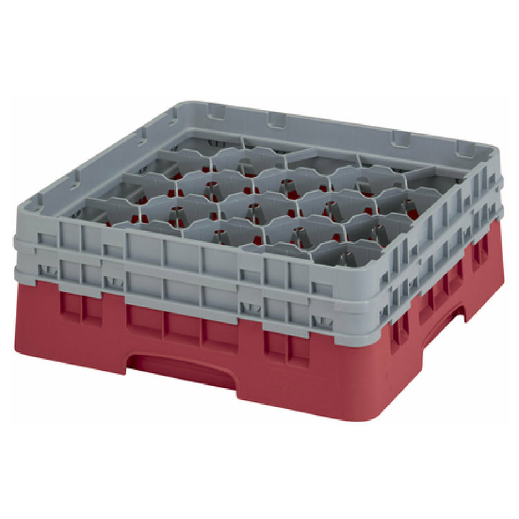 The Cambro 20S434416 Camrack® Glass Rack with (2) Soft Gray Extenders is a full-size, highly efficient storage solution designed for optimal glassware management in various industry settings. Measuring 19-3/4" x 19-3/4" x 7-1/4", this Camrack® is engineered with precision to accommodate up to 20 compartments. Each compartment is carefully crafted to hold a maximum diameter of 3-7/8" and a height of up to 5-1/4", ensuring the safe and organized handling of glassware. The inclusion of two soft gray extenders adds versatility to its use, allowing customization according to specific height requirements. Finished in a striking cranberry hue, this glass rack is HACCP compliant, which makes it ideal for maintaining high hygiene standards in food safety operations. Additionally, being NSF certified, it guarantees adherence to public health and safety guidelines. The Cambro 20S434416 Camrack® is a reliable and adaptable choice for businesses ranging from restaurants and hotels to catering services, where efficient glassware storage and transport are critical. Its robust construction and thoughtful design make it a valuable asset for any establishment seeking to enhance operational efficiency while maintaining quality standards.