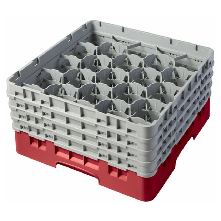 The Cambro 20S800163 Camrack® Glass Rack With (4) Soft Gray Extenders Full Size is a versatile and robust solution designed specifically for commercial kitchens and catering services that demand efficiency and high standards of hygiene. Measuring 19-3/4 inches by 19-3/4 inches by 10-1/2 inches, this glass rack offers ample space with 20 compartments, each accommodating glasses with a maximum diameter of 3-7/8 inches and a height of up to 8-1/2 inches. The inclusion of four soft gray extenders provides additional stability and protection for glassware during transport and storage. Crafted in an attractive red, the Cambro Camrack is HACCP compliant and NSF certified, assuring users of its safety and suitability for foodservice environments. The full-size design makes it an ideal choice for restaurants, hotels, and other venues requiring efficient glassware management. Its sturdy construction ensures durability and long-term reliability, while the thoughtful design supports ease of handling and cleaning, making it an essential asset in maintaining operational excellence and hygiene standards in various settings.