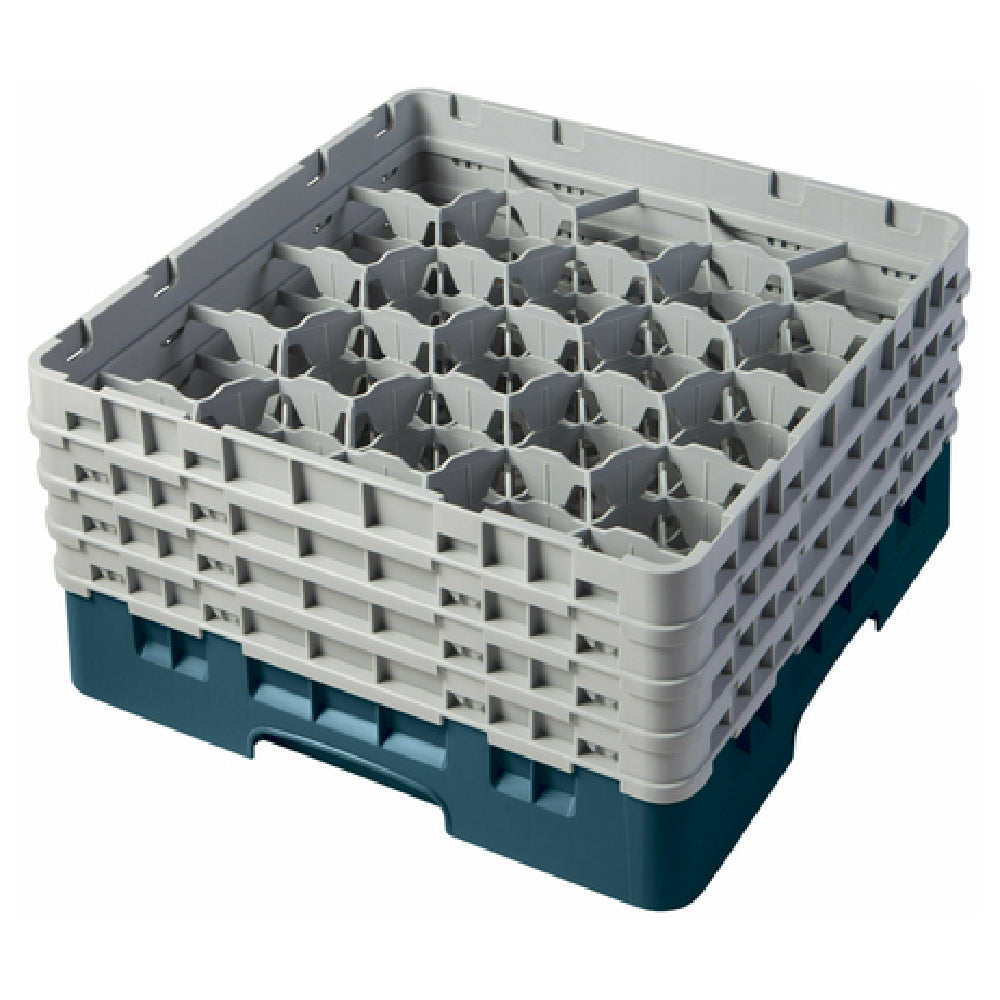 The Cambro 20S800414 Camrack® Glass Rack with (4) Soft Gray Extenders Full Size is a meticulously engineered solution for efficient glassware handling and storage in commercial kitchens. Measuring 19-3/4" x 19-3/4" x 10-1/2", this full-size glass rack is equipped with 20 compartments, each accommodating a maximum diameter of 3-7/8" and a height of up to 8-1/2". This ensures secure and organized storage for a variety of glassware, making it invaluable for restaurants, hotels, and catering operations. The inclusion of four soft gray extenders enhances the rack's versatility by providing additional height, allowing for safe stacking and protection of taller glassware. Constructed in a vibrant teal color, the Cambro Camrack® is HACCP compliant and NSF certified, meeting rigorous standards for food safety and sanitation. This glass rack is tailored for industry professionals seeking efficiency and reliability, harmonizing functionality with a design that supports the rigorous demands of high-volume foodservice environments. Its robust construction and compliance with health regulations make it an indispensable tool for maintaining hygiene and organization in glassware storage and transport.