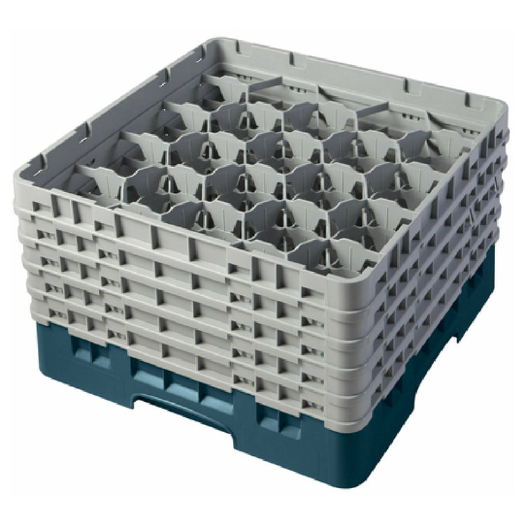 The Cambro 20S958414 Camrack® Glass Rack With (5) Soft Gray Extenders Full Size is a meticulously designed storage solution for glassware, measuring 19-3/4" x 19-3/4" x 12-1/8". It features 20 compartments, each accommodating glassware with a maximum diameter of 3-7/8" and a maximum height of 10-1/8", making it suitable for various glass sizes. The inclusion of five soft gray extenders enhances its utility by allowing for adjustable compartment depths to accommodate taller items. This full-size rack stands out with its teal color, which is not only aesthetically pleasing but also functional for easy identification. It adheres to HACCP compliance, ensuring that food safety protocols are followed, and is NSF certified, affirming its quality and safety standards in commercial environments. The Cambro 20S958414 is ideal for restaurants, bars, and catering services seeking reliable and hygienic storage solutions for their glassware. Its robust design and compliance with industry standards position it as a valuable asset for establishments aiming to maintain high levels of operational efficiency and cleanliness.