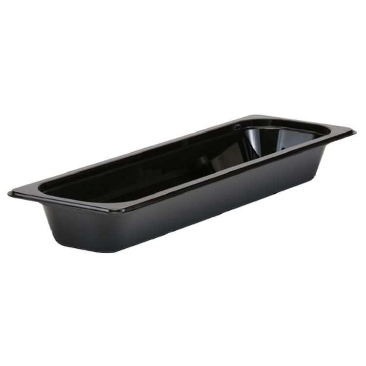 The Cambro 22LPCW110 Camwear® Food Pan is a versatile and durable kitchen essential, boasting a 3.2 Qt. capacity and a depth of 2-1/2 inches, making it ideal for a variety of culinary applications. This food pan is classified as a 1/2 size long, providing ample space for storing, serving, and prepping food in both commercial and home kitchen settings. Crafted from high-quality polycarbonate, the pan is designed to withstand the rigors of daily use, offering superior resistance to stains, odors, and breakage compared to traditional materials. Its sleek black color adds a touch of modern elegance to any kitchen environment, while its NSF certification ensures that it meets rigorous public health and safety standards. This makes the Cambro 22LPCW110 an excellent choice for restaurants, catering services, and foodservice operations that demand reliable and hygienic food storage solutions. The thoughtful construction of the Cambro Camwear® Food Pan not only enhances its durability but also simplifies cleaning and maintenance, making it a practical investment for any professional culinary setting. Its combination of robust design and functional capacity underscores its value as a staple in food preparation and storage.