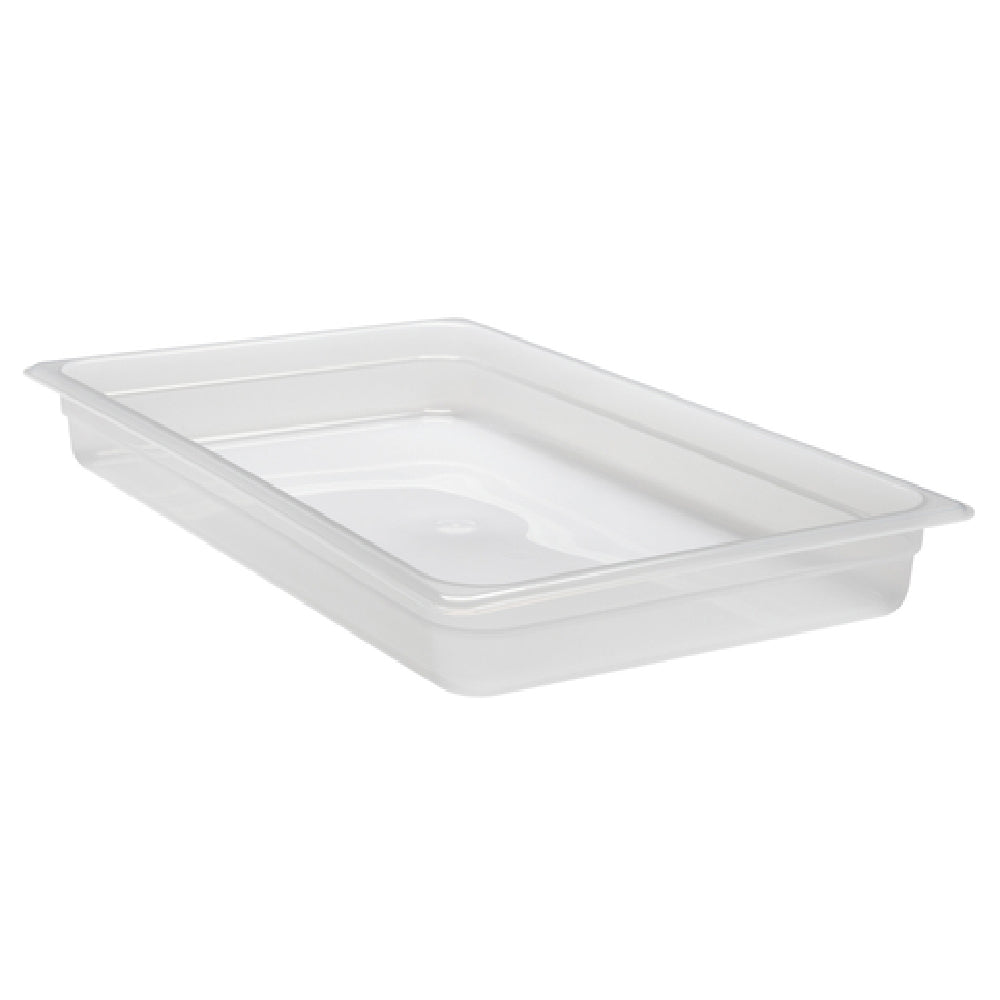 The Cambro 22PP190 Food Pan - 1/2 Size 2-1/2" Deep is a versatile and essential tool for professional kitchens, offering a functional design tailored to meet diverse culinary needs. Crafted from durable polypropylene, this food pan boasts a translucent finish, allowing for easy visibility of contents without needing to open the lid, thus maintaining optimal food storage conditions. With dimensions that accommodate a depth of 2-1/2 inches, it provides ample space for storing a variety of ingredients or prepared dishes. The Cambro 22PP190 is a 1/2 size pan, making it compatible with standard kitchen setups and ideal for efficient space utilization in crowded kitchen environments. As an NSF-certified product, it adheres to strict public health and safety standards, ensuring that it meets the rigorous demands of food service operations. This food pan is particularly well-suited for restaurants, catering services, and any food service establishments that prioritize cleanliness, durability, and efficiency. Its robust construction means it can withstand the rigors of daily use while remaining easy to clean and maintain, thus ensuring its longevity and reliability as a staple in commercial food preparation and storage.