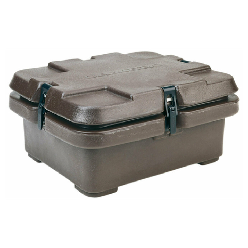 The Cambro 240MPC131 Camcarrier® is expertly crafted for half-size food pans, presenting an indispensable solution for efficient food transportation and storage. This versatile unit, specifically designed to accommodate the Camdolly® CD1420, showcases an approximate capacity of 6.3 quarts, ensuring ample space for a variety of culinary needs. Its exterior dimensions measure 16-1/2"W x 13-7/8"D, allowing it to seamlessly fit into diverse kitchen environments. The Camcarrier® is engineered to hold one half-size food pan with a depth of either 2-1/2" or 4", providing flexibility for different storage requirements. Constructed from durable polyethylene and featuring foam insulation, this product guarantees optimal temperature retention and durability. Stacking lugs are integrated into the design, enhancing storage efficiency by allowing multiple units to be securely stacked. The unit is dishwasher safe, simplifying the cleaning process and enhancing hygiene. Available in an elegant dark brown finish, the Cambro 240MPC131 is NSF certified, reflecting its adherence to stringent public health and safety standards. This Camcarrier® is an invaluable asset for catering businesses, institutions, and restaurants seeking reliable food storage and transportation solutions without compromising on quality or efficiency.