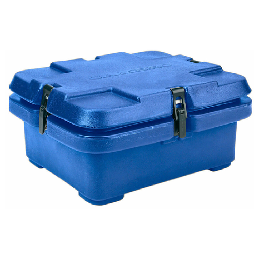 The Cambro 240MPC186 Camcarrier is a versatile container specifically designed for half-size food pans, ensuring efficient transport and storage solutions for various food service operations. With an approximate capacity of 6.3 quarts, this navy blue Camcarrier seamlessly accommodates one half-size pan with depths of either 2.5 inches or 4 inches. Constructed from durable polyethylene with foam insulation, it provides superior thermal retention, keeping food at optimal temperatures during transit. The exterior dimensions measure 16.5 inches wide by 13.875 inches deep, allowing for easy handling and maneuverability. The inclusion of stacking lugs facilitates secure stacking, maximizing storage efficiency. Compatibility with the Camdolly CD1420 further enhances its portability, enabling smooth mobility across different locations. This Camcarrier is also dishwasher safe, ensuring hassle-free cleaning and maintenance, while its NSF certification attests to its adherence to public health standards. Ideal for catering services, restaurants, and other food service establishments, the Cambro 240MPC186 Camcarrier offers a reliable and practical solution for transporting and storing food, combining robust construction with thoughtful design elements to meet the diverse needs of the industry.