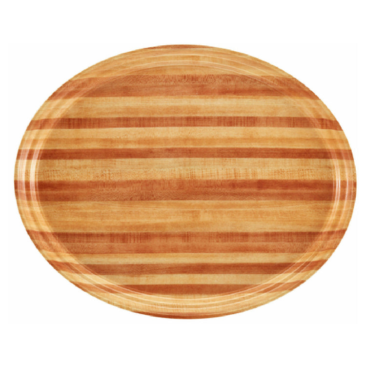 The Cambro 2500303 Serving Camtray® Oval 19-1/4" x 24" is an expertly crafted serving tray, ideal for diverse food service environments. Measuring an impressive 19-1/4 inches by 24 inches, this tray is designed to accommodate a variety of serving needs, offering ample space for food presentation. Constructed from durable fiberglass, it combines strength with a lightweight profile, making it easy to handle while ensuring long-lasting use. The tray's light butcher block finish not only adds an aesthetic appeal but also enhances its resistance to stains and odors, ensuring it maintains its appearance over time. In terms of hygiene and convenience, this Camtray® is dishwasher safe, allowing for effortless cleaning and maintenance, which is particularly beneficial in high-volume settings such as cafeterias, buffets, and catered events. Furthermore, the tray is NSF certified, guaranteeing that it meets the rigorous standards for public health protection, making it a reliable choice for any professional kitchen. Whether in a bustling restaurant, a corporate dining facility, or a casual eatery, the Cambro 2500303 Serving Camtray® offers a perfect blend of functionality, style, and compliance with industry standards, making it a valuable asset for any food service operation.