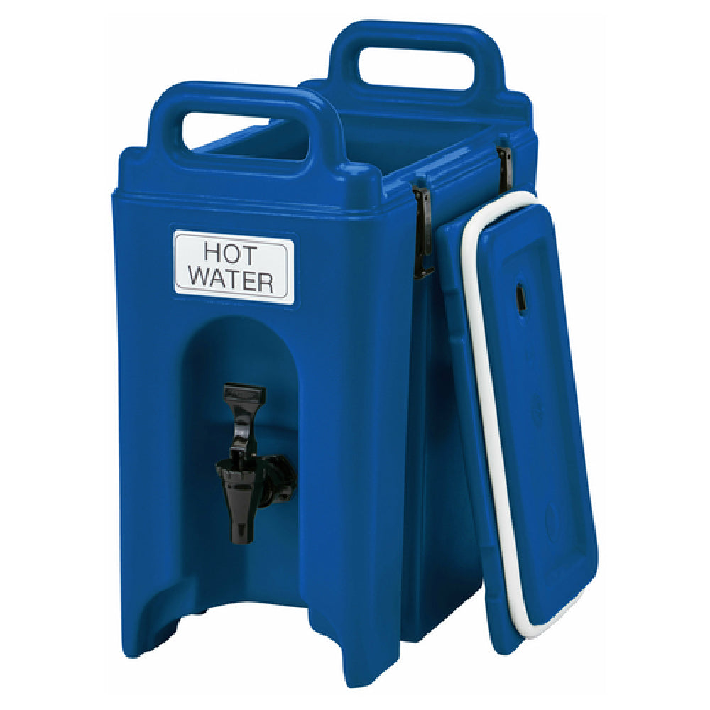 The Cambro 250LCD186 Camtainer® Beverage Carrier is a versatile and efficient insulated plastic container designed to cater to various segments within the beverage service industry. With its compact dimensions of 9"W x 16-1/2"D x 18-3/8"H, this navy blue carrier can hold up to 2-1/2 gallons, making it an ideal choice for both small and large-scale catering events. This Camtainer is constructed with durability in mind, featuring a robust insulated design that ensures beverages are kept at optimal temperatures for extended periods, thus preserving flavor and quality. Its NSF certification signifies its compliance with stringent health and safety standards, making it a trusted choice for professional caterers, restaurants, and hospitality venues. The Cambro 250LCD186 is particularly beneficial for operations requiring reliable transport and service of hot or cold beverages, providing exceptional value to businesses focused on quality and efficiency. Its practical design and capacity make it suitable for various applications, from corporate events and outdoor gatherings to institutional dining and food service environments. This beverage carrier represents a blend of functionality and reliability, tailored to meet the diverse needs of industry professionals.