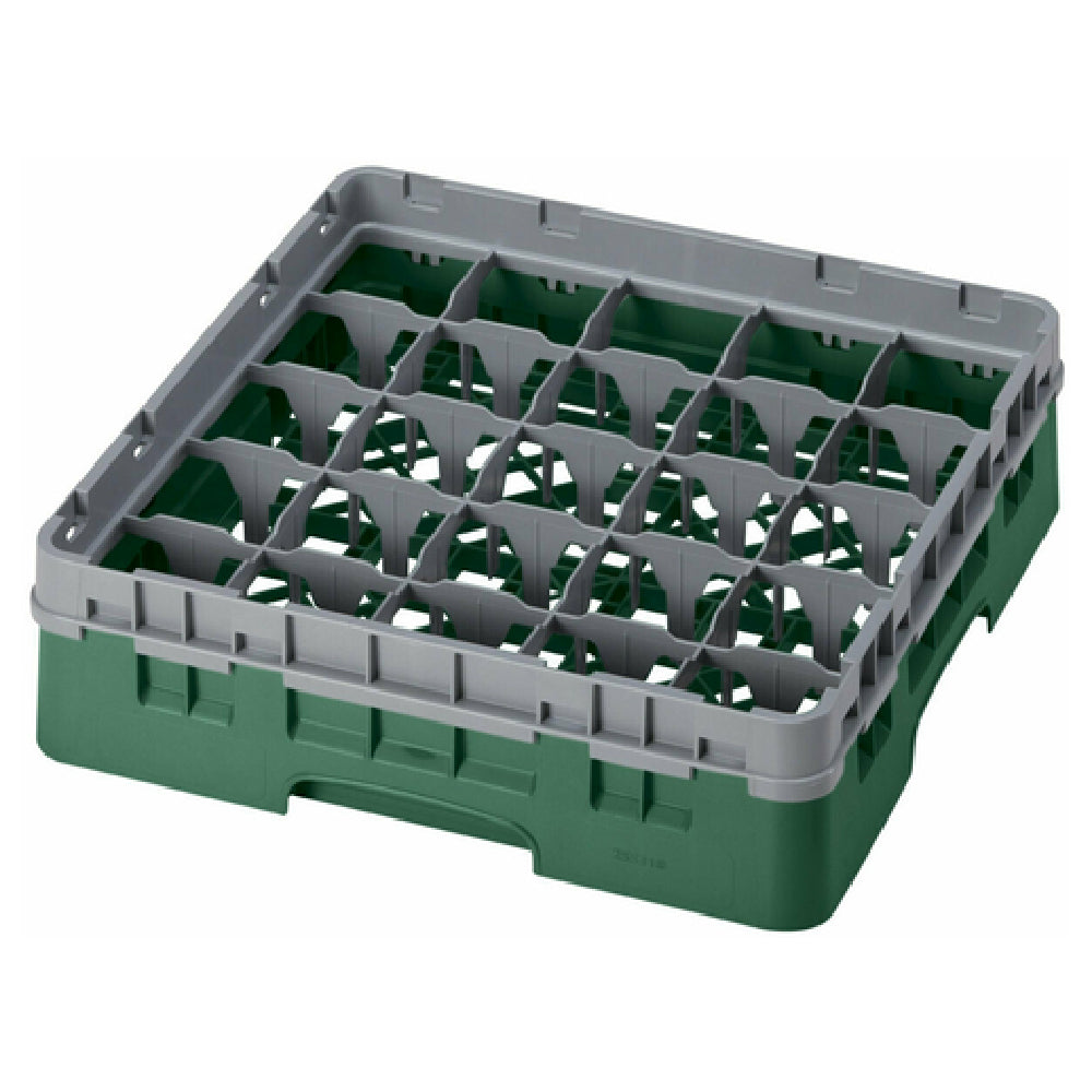 The Cambro 25S318119 Camrack® Glass Rack with Soft Gray Extender Full Size is a meticulously engineered solution tailored for the hospitality and food service industries, ensuring seamless glassware management. With dimensions of 19-3/4" x 19-3/4" x 5-5/8", this full-size rack is designed to optimize storage space while maintaining the integrity of delicate glassware. It features 25 compartments, each accommodating glassware with a maximum diameter of 3-7/16" and a height of up to 3-5/8", providing ample room for a variety of glass types. The soft gray extender enhances its capacity, allowing for flexible storage solutions. The rack's Sherwood green color not only adds a touch of aesthetic appeal but also signifies its compliance with HACCP standards, ensuring it meets rigorous food safety and hygiene guidelines. Furthermore, it is NSF certified, guaranteeing adherence to public health and safety regulations. The Cambro 25S318119 Camrack® is an indispensable asset for establishments prioritizing efficient glassware handling and safety, offering a robust and reliable storage system that seamlessly integrates into any professional setting.